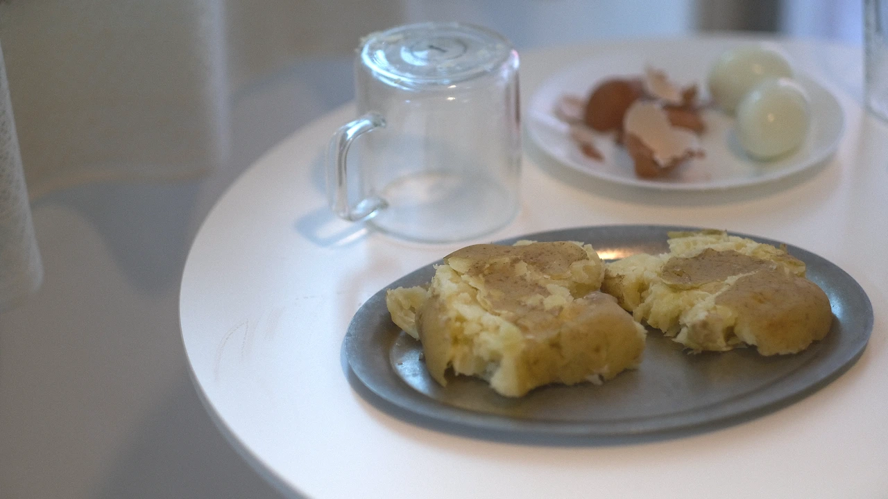 껍질 채 뭉개진 감자를 버터에 구우니 안은 촉촉하고 겉은 바삭하다. 기름을 많이 흡수한 튀긴 감자는 칼로리가 높다. 버터 10g만 첨가된 감자구이는 칼로리는 낮고 영상성분이 살아 있다. 오꼬노미야끼처럼 감자 위에 다양한 소스를 마음껏 뿌려도 괜찮다. 특히 케첩, 마요네즈, 레몬이 뿌려진 그릭요구르트가 잘 어울린다. 그릭요구르트에 오이나 레몬을 섞어 아이스크림처럼 두툼하게 올리면 맥주 안주로도 손색이 없다.