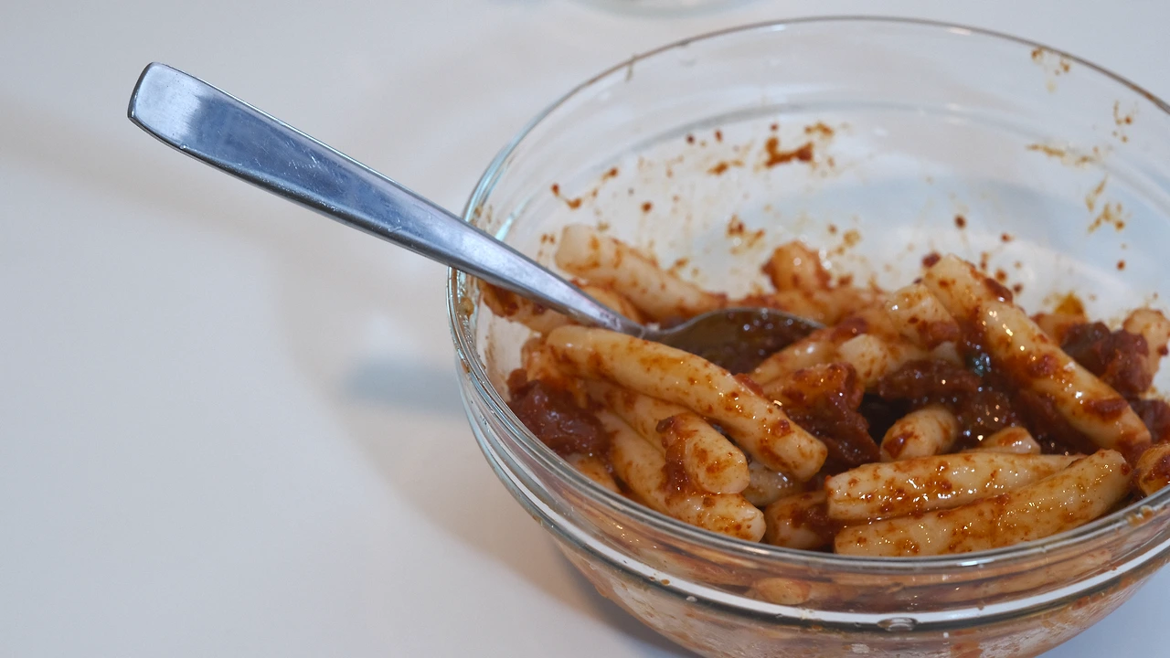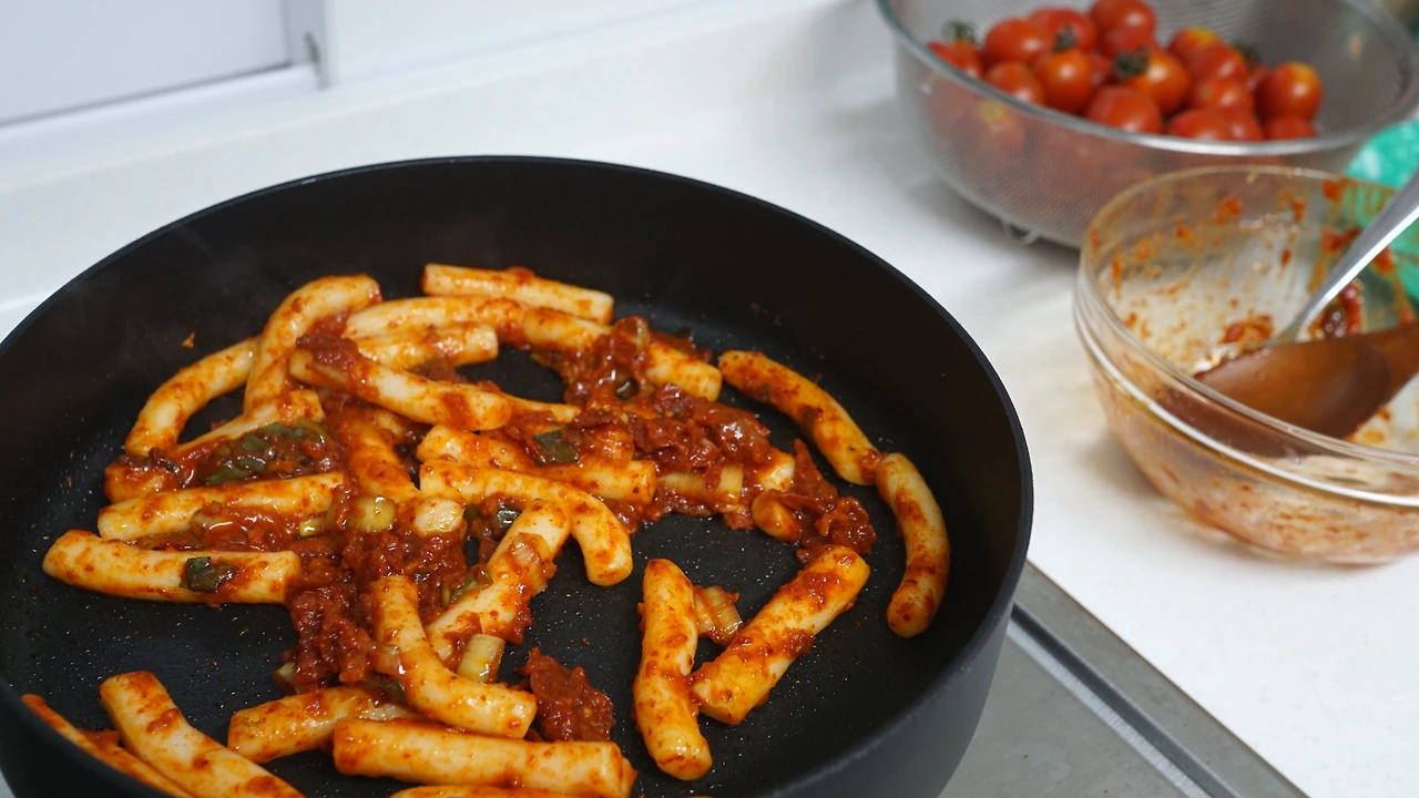 통인동에 국물 없이 기름과 고춧가루로 맛을 낸 ‘기름떡볶이‘가 있다. 올리브오일과 토마토를 가지고 이 떡볶이를 상상하며 만들어 보기로 했다.