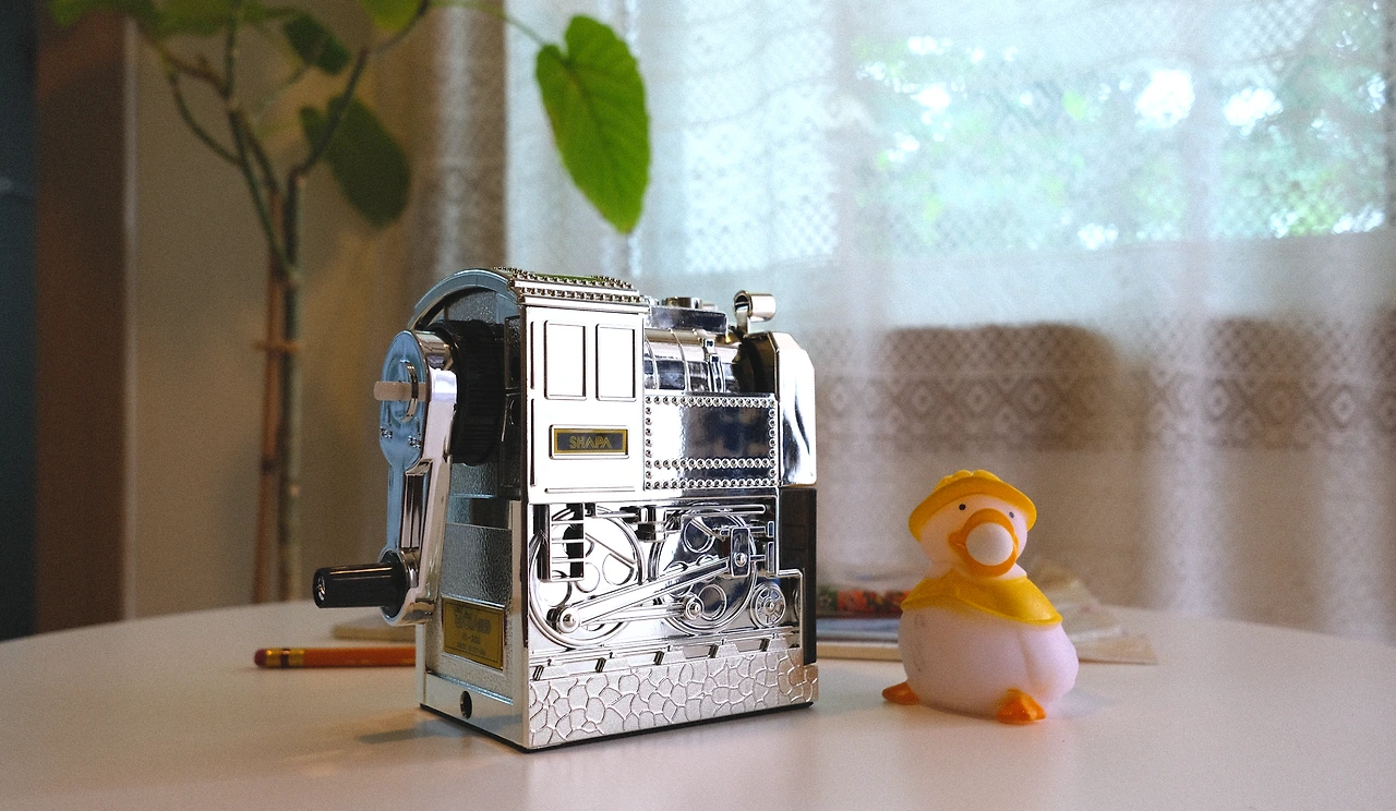 검정봉지를 들고 집으로 왔다. 물티슈를 꺼내 포장지에 붙은 먼지를 닦았다. 어쩌면 그 당시 집집마다 하나쯤은 있었을 열차모양 연필깎이. 이 연필깎이는 나에게 명품 ‘문구’였다. 30년 만에 내가 번 돈으로 하이샤파 제품을 사니 기분이 묘했다. 포장을 뜯고 연필을 깎아 보았다. 기차가 잘 달린다.