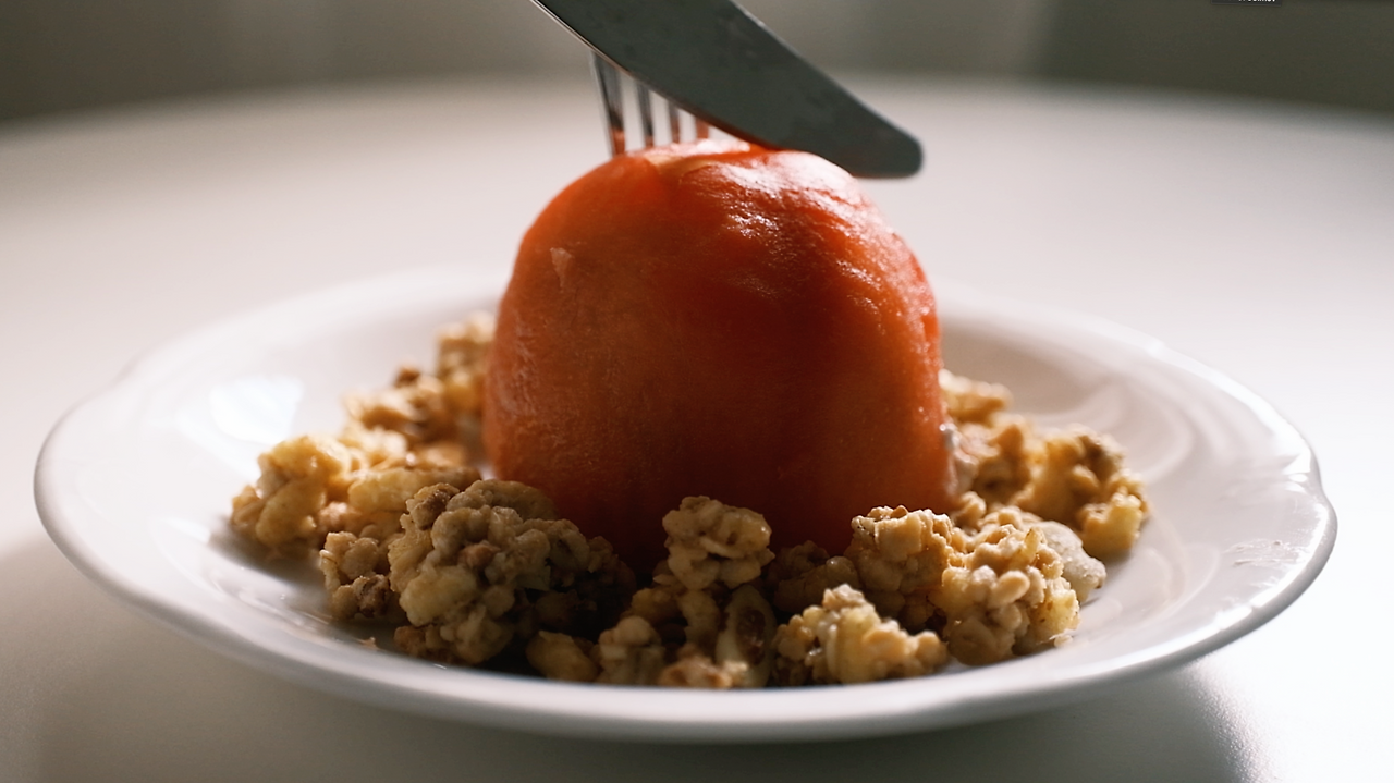 살짝 데친 토마토는 가을 홍시를 닮았다. 시리얼을 그릇 바닥에 깔고 그릭요구그트를 품은 토마토를 올려준다. 시리얼의 바삭함과 토마토 감칠맛, 그릭요구르트 풍미가 어우러져 근사한 아침이 된다.