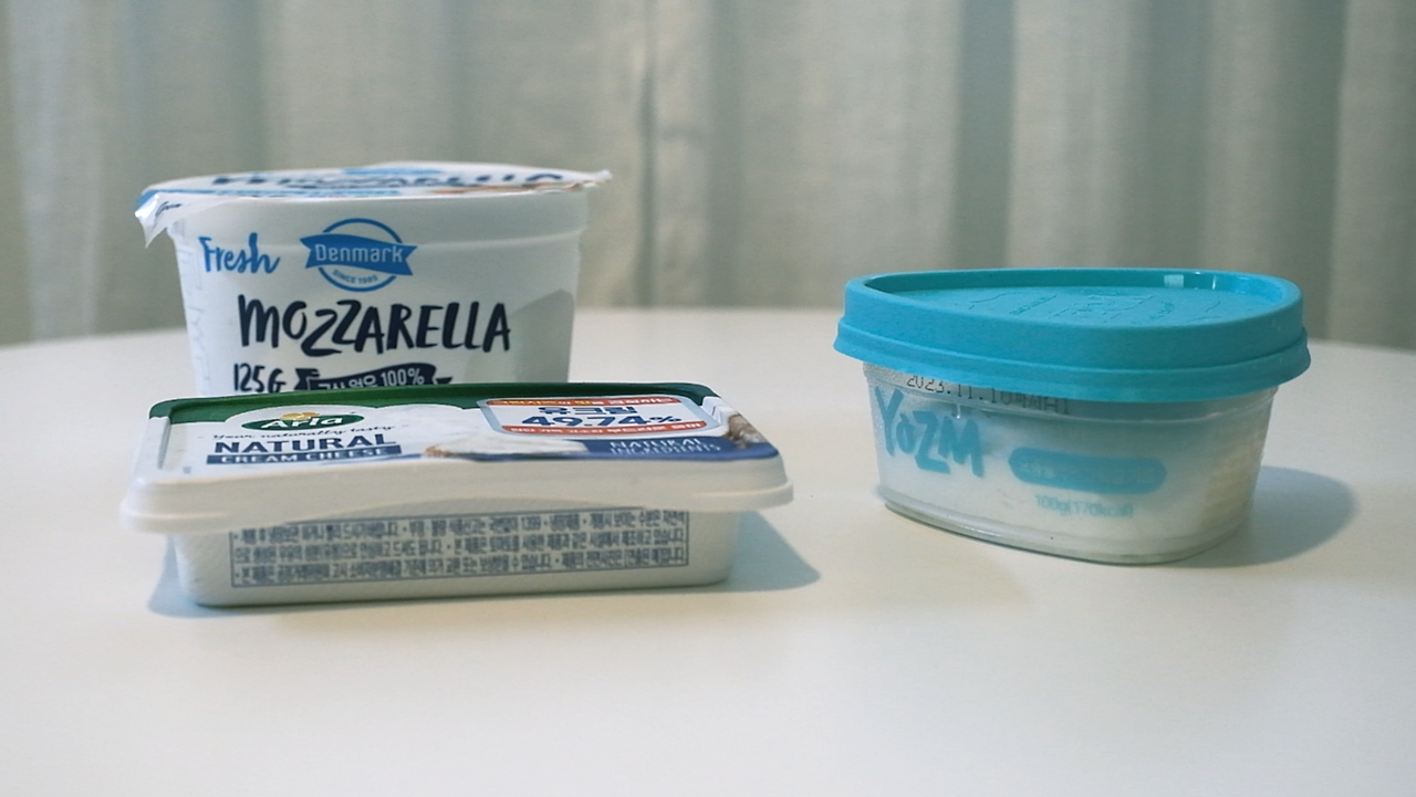 시중에서 쉽고 저렴하게 구할 수 있으며 지방이 풍부한 재료는 유제품이다. 우유를 가공하여 만든 치즈, 요구르트를 토마토와 함께 섭취하면 모양도 맛도 좋아진다. 또한 토마토 항산화 성분이 지방을 만나 체내 흡수율을 높인다. 마트에 가서 하얀색 제품을 샀다. 크림치즈, 그릭요구르트, 모차렐라 치즈. 이 3가지와 함께 토마토를 먹어보기로 했다.