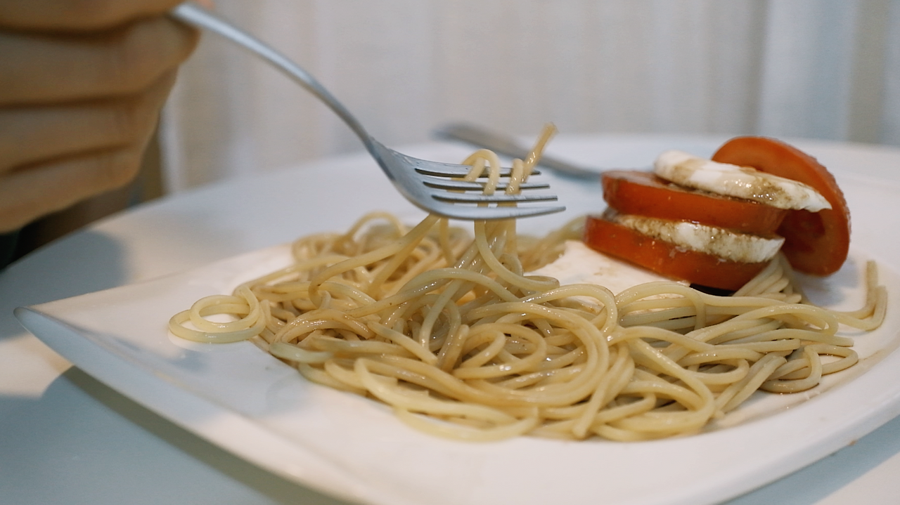 레고 블록 쌓듯 토마토와 모차렐라 치즈를 얇게 잘라 교대로 쌓아준다. 여기에 올리브오일과 소금, 발사믹 식초를 뿌리면 이탈리아 음식점에서 파는 '토마토 카프레제 샐러드'가 된다. 배가고파 파스타 면을 삶았다. 토마토, 치즈, 면을 다 같이 섞어주면 끝이다. 매우 단순하고 정직한 냉파스타가 되었다.