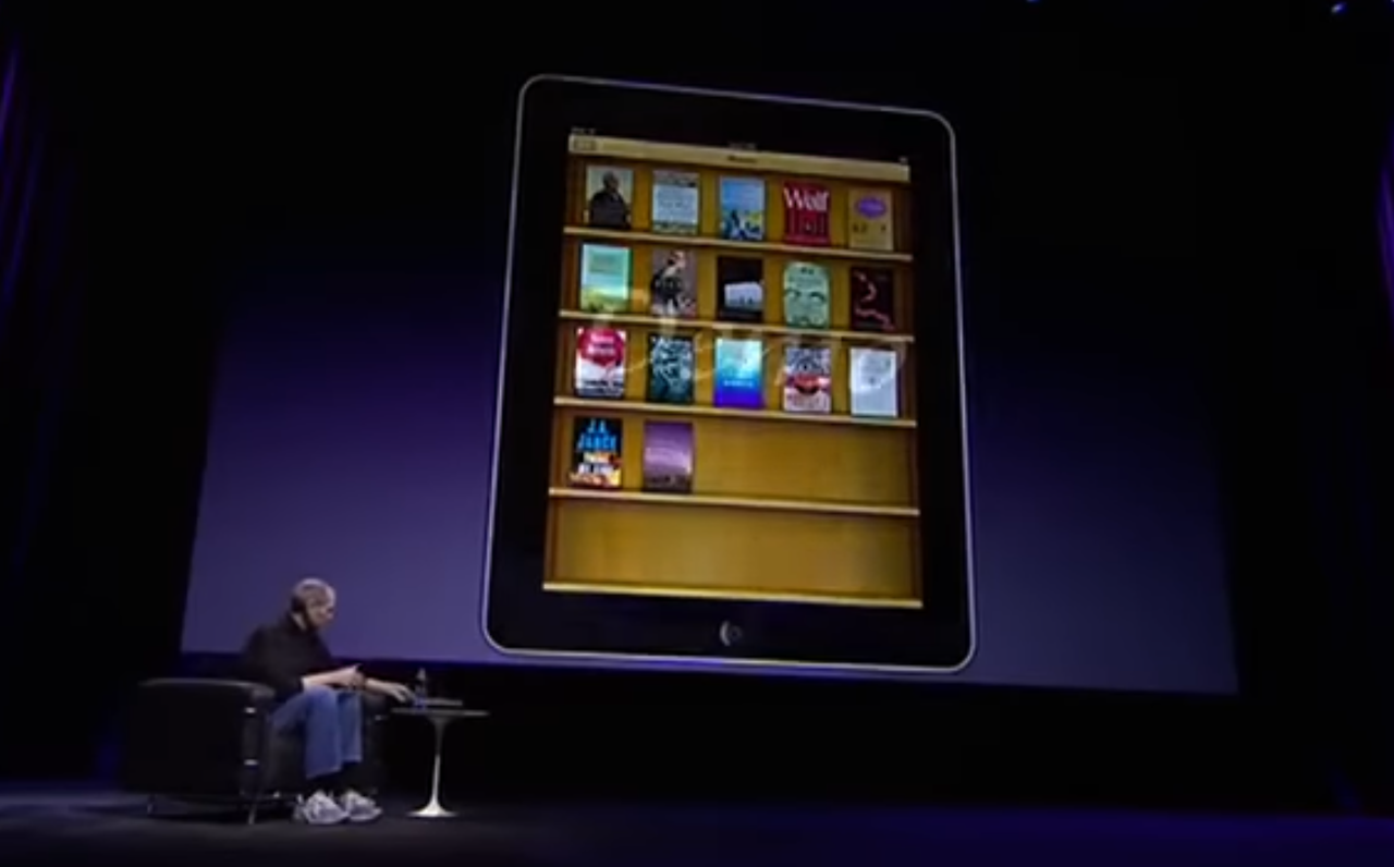 이 날 프레젠테이션 발표 마지막 장에서 스티브 잡스는 직접 아이패드로 신문 기사와 원하는 책을 다운로드하고 책을 읽는 것을 시연한다. 잡스는 이 기계로 사람들이 책과 신문을 더 편리하게, 많이 읽을 있을 것으로 기대했다.