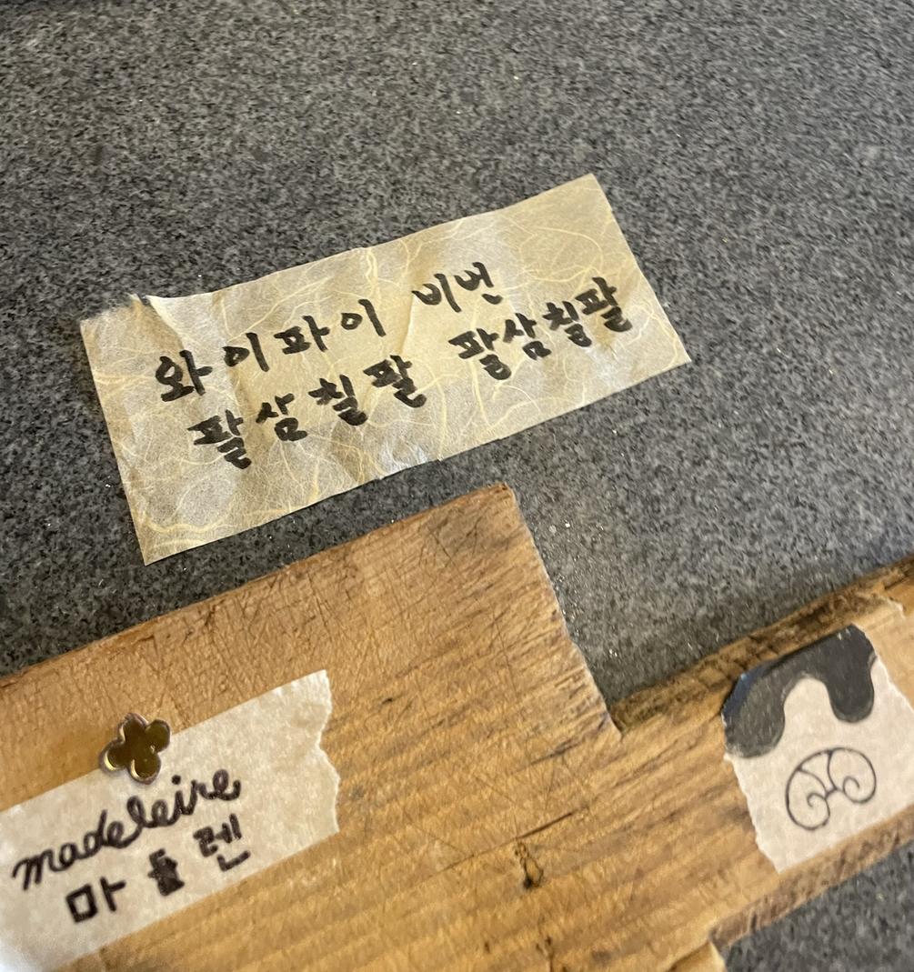 가장 추천하는 방법은 다이소에서 천 원짜리 종이테이프를 무심하게 7cm로 잘라 검정펜으로 적는 것이다. 종이테이프는 저렴하고 페인트 벽에 붙였다가 떼기를 반복해도 벽이 손상되지 않는다. 이것은 무광에 채도가 낮아 어디에 부착하여도 크게 공간 분위기를 해치지도 않는다. 무엇보다 정성 들여 쓴 손글씨는 당신 가게에만의 차별화된 이미지가 될 것이다.