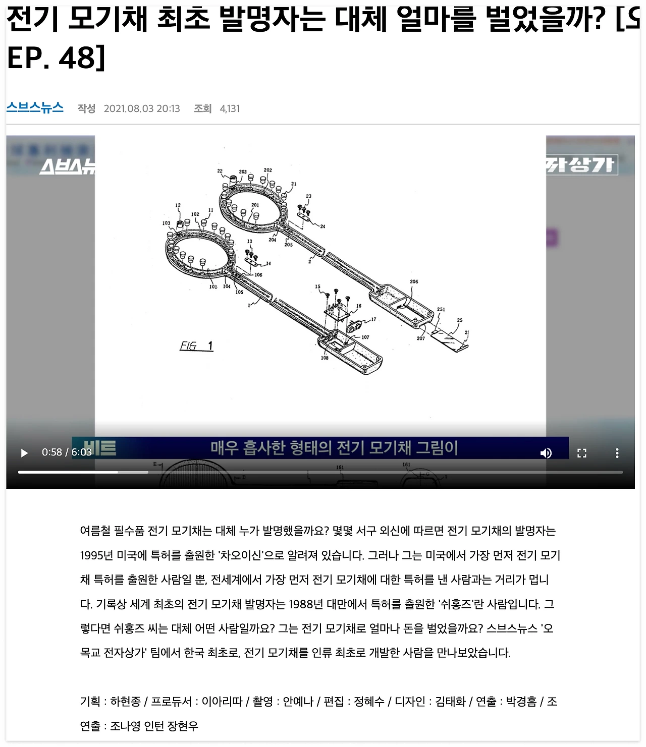 스브스 뉴스에 따르면 중국에서 유사한 형태로 특허 출원을 한 적은 있으나 최초 발명가가 제품 생산을 하지는 않았다고 한다. 이 디자인 특허는 보호 기간이 만료되어 이제는 누구나 유사한 형태 전기 모기채를 생산할 수 있다고 한다.