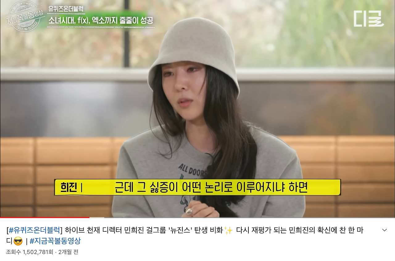 유퀴즈온더블럭에 전 SM 비주얼 디렉터이자 현재 뉴진스를 기획한 민희진이 출현하였다. 어떻게 매번 성공하는 ‘콘셉트’을 만드냐는 질문에 다음과 같이 대답했다.