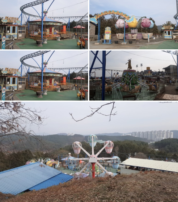 엔제리너스 옆길을 따라 들어가니 놀이기구가 보인다. 마치 광안리에 있는 광안 비치랜드처럼 작지만 아이들이 좋아할 만한 기구들이 있다. 세월이 흘러 낡아 보이는 모습마저 흡사하다.