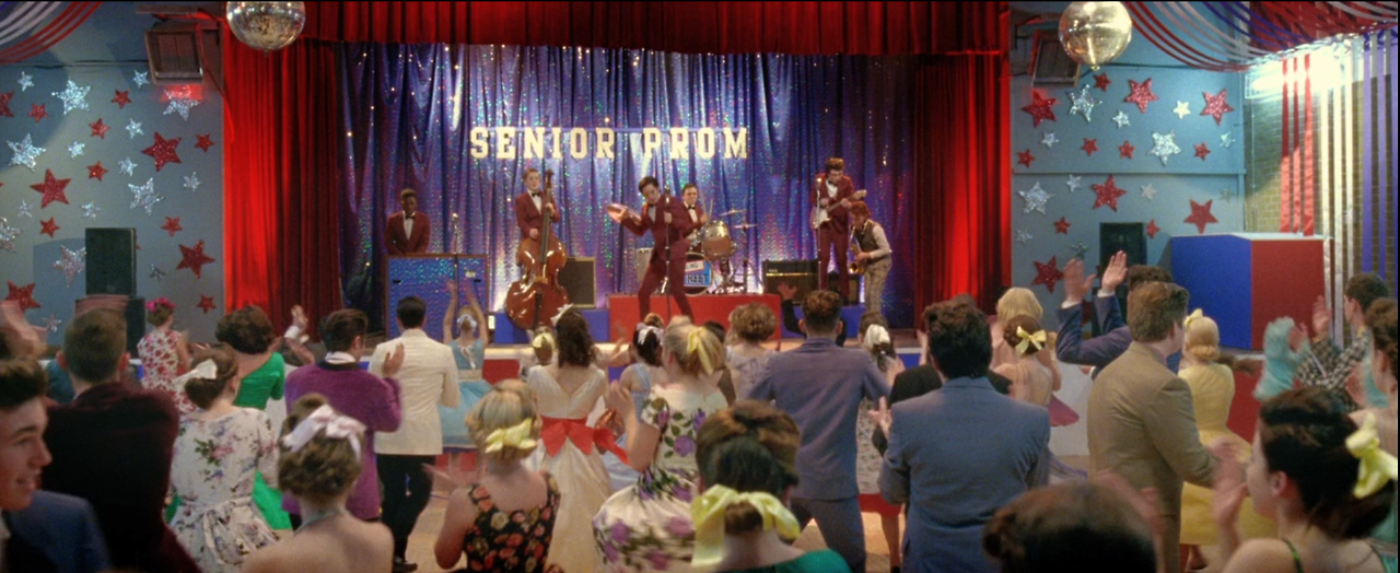 ‘싱 스트리트’가 강당에서 뮤직비디오를 촬영할 때 코너는 상상을 합니다. 싸웠던 부모님이 사이좋게 입장하고 그의 형도 그를 보러 오고 라피나도 왔고 주변의 관객들은 모두 자신과 밴드를 위해 춤을 춥니다만 현실은 적막함이 감도는 강당일 뿐이었습니다.