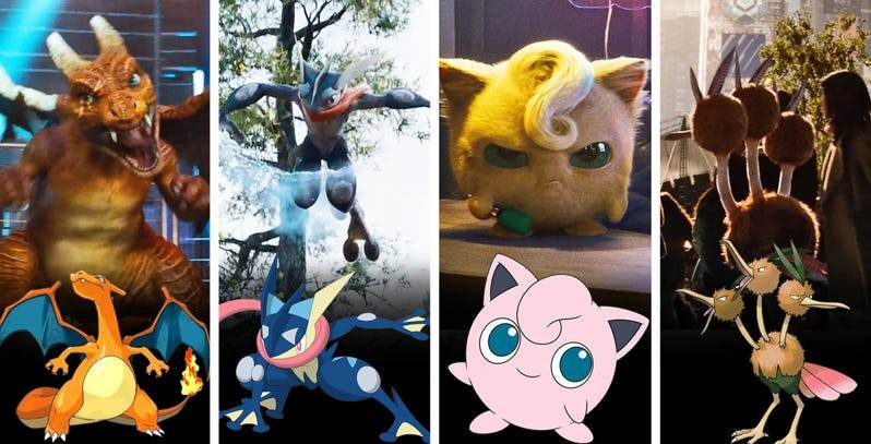 반면 명탐정 피카츄는 그 선을 정말 잘 지켰다고 생각해요. 내루미를 보면서 그렇지 않다고 생각하는 분도 계실 테지만 내루미의 날름 거림은 정말 잘 표현했습니다. 그리고 마임맨의 마임은 진짜 재밌었어요. 마임맨의 살아있는 마임과 재치 있는 동작, 그리고 마임맨의 특징을 잘 살려 마임맨을 공략하는 것까지 좋았습니다. 개굴닌자, 토대부기, 푸린, 리자몽, 갸라도스 등의 실사화 역시 무척 좋았어요. 그리고 영화의 난이도를 낮추기 위해서 그런 건지 모르겠지만 1세대에 주로 등장하는 고라파덕의 파덕~ 하는 소리, 푸린의 노래, 지우의 파트너 리자몽의 등장 등 영화 초반에는 포켓몬스터 1세대나 애니메이션 초반만 즐긴 사람도 쉽게 영화에 빠질 수 있었습니다. 그러다 차츰 세대를 거쳐오며 인기 있는 포켓몬을 보여주면서 익숙하게 해주며 영화에 쉽게 몰입할 수 있게 해주었죠.