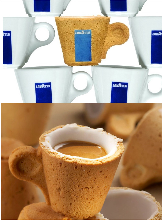 110년 역사에 빛나는 이태리 커피브랜드 LAVAZZA에서 소비자의 편리함과 환경을 고려한 쿠키컵을 선보였습니다. 이 컵은 Enrique Luis Sardi가 개발 및 디자인 하였습니다. 커피의 뜨거운 온도를 견뎌 낼 수 있도록 쿠키컵 안쪽에는 특수설탕으로 코팅하는 아이싱슈거 기법을 활용하였다고 합니다. 환경과 맛 둘다 사로잡은 이 커피컵은 오직 이탈리아 라바짜1호점 산 토마소 10번지에서만 만날 수 있다고 합니다.