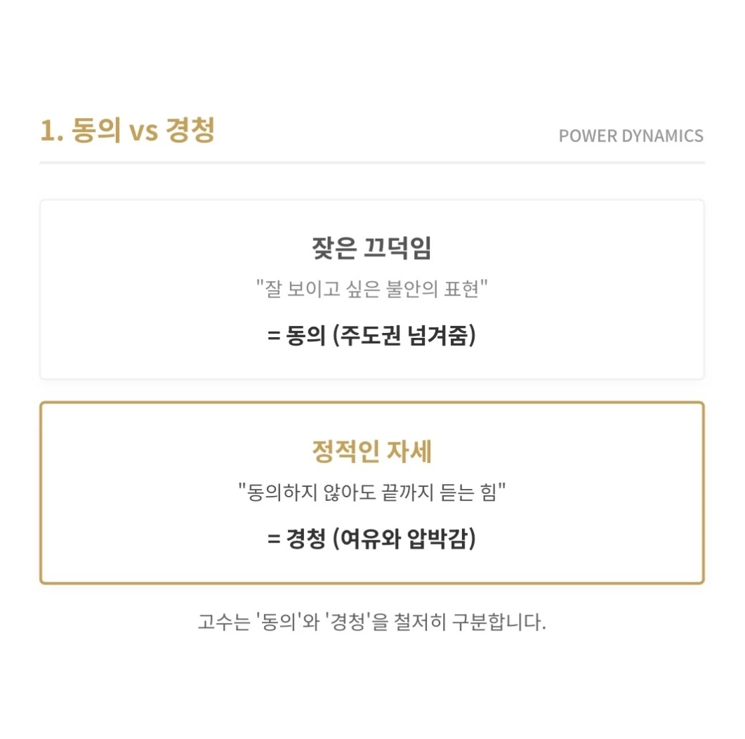 하지만 고수는 '동의'와 '경청'을 철저히 구분합니다.