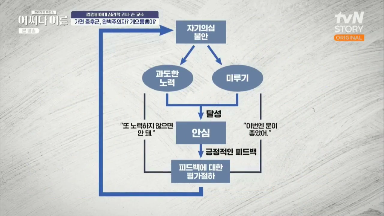 왜냐하면 실수나 실패를 두려워하기 때문이다. 뛰어난 업적을 이루더라고 스스로를 과소평가하고 타인의 인정을 부담스러워하는 모습을 보인다.