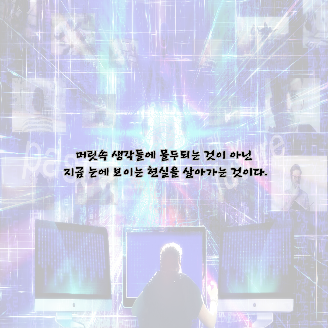 우리는 '생각'이라는 가상현실 속에 살고 있다. 그 가상현실 속에 과거의 불행한 일과 미래의 무서운 일들이 무작위로 생성된다. 그러나 그것은 말 그대로 가상현실이다. 기분과 상태에 따라 끊임없이 재구성된다.