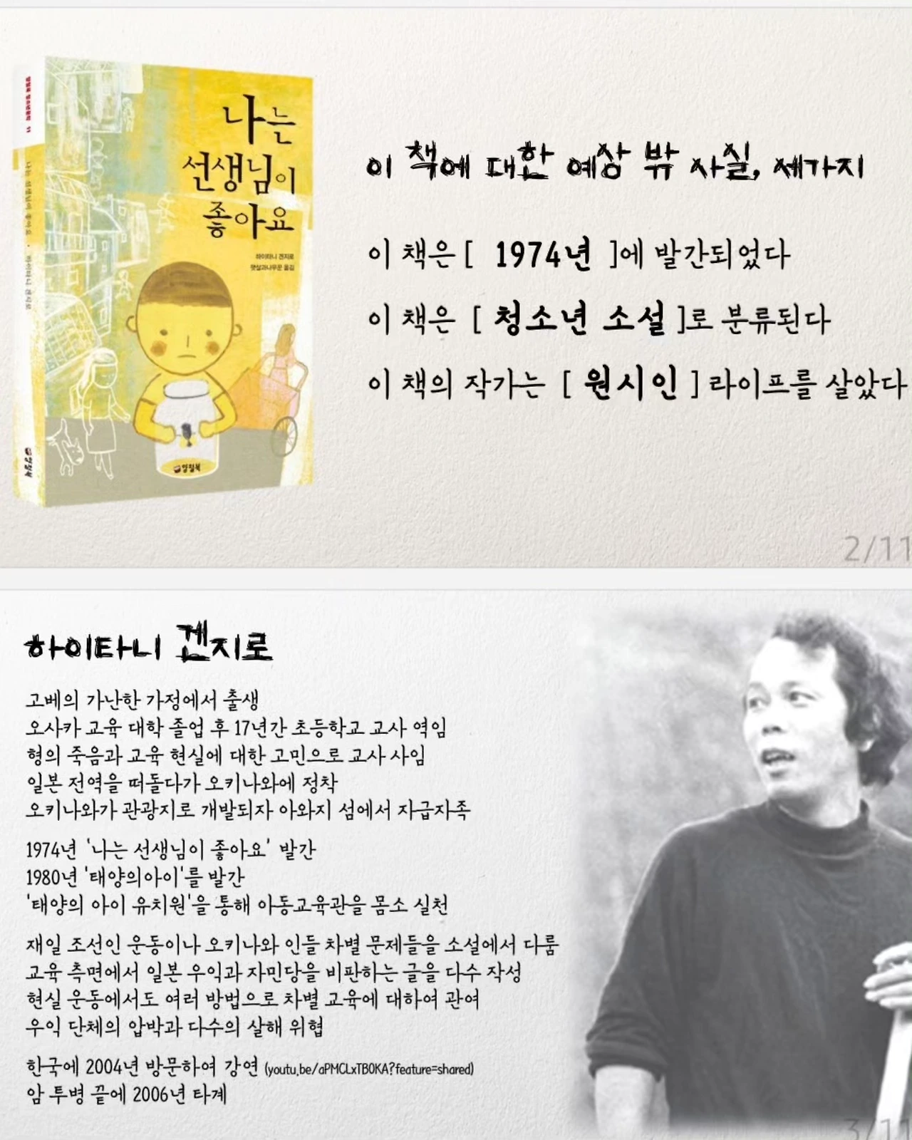 #청소년문학으로 분류되어 있는 장편소설 #하이타니겐지로 의 #나는선생님이좋아요 #독서모임 추천 책으로 읽게 됐다