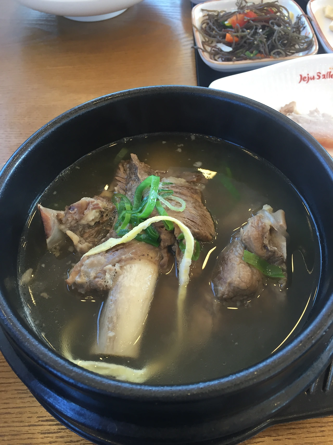 남동생 첫 딸이 돌이라 특별히 기간 맞춰 찾은 고향이었습니다. 제주도의 잔치들의 기본적인 찬들이랍니다. 삶은 돼지고기(흔히 돔베고기라고도 하는)와 순대 그리고 떡을 내옵니다. 결혼식 잔치 땐 두부와 회 등이 추가되지요. 이번엔 갈비탕과 아래 찬이 메인이었습니다:) 갈비탕에 엄청나게 많은 갈비가 들어 있어 놀랐다는. 제주도 가서 갈비탕 찾는 사람은 없겠지만 혹 가시고 싶다면 여기 추천! (제주시 노형동 제주살레)
