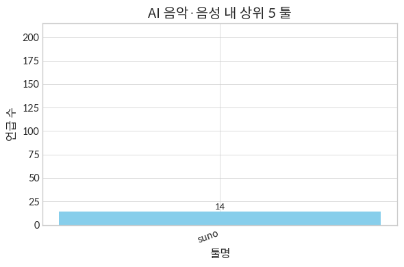 AI 음악·음성 분야는 전체 응답 중 14회(약 1%)로 수치는 높지 않았지만,