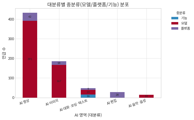 이번 분석은 “사람들이 AI 툴을 어떻게 인식하고 있는가”에서 출발해, 각 툴을 기능과 목적 중심으로 재분류한 결과입니다.