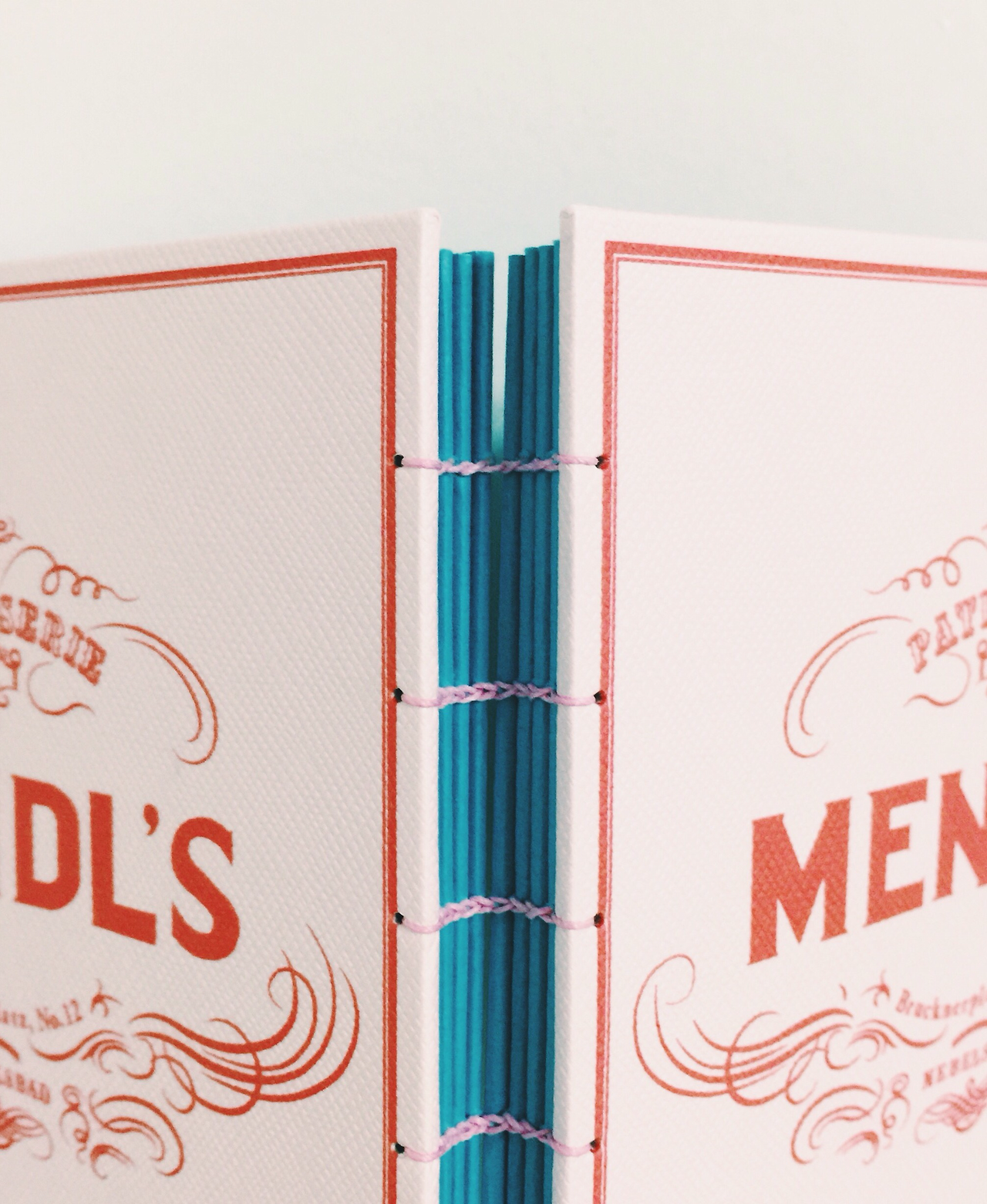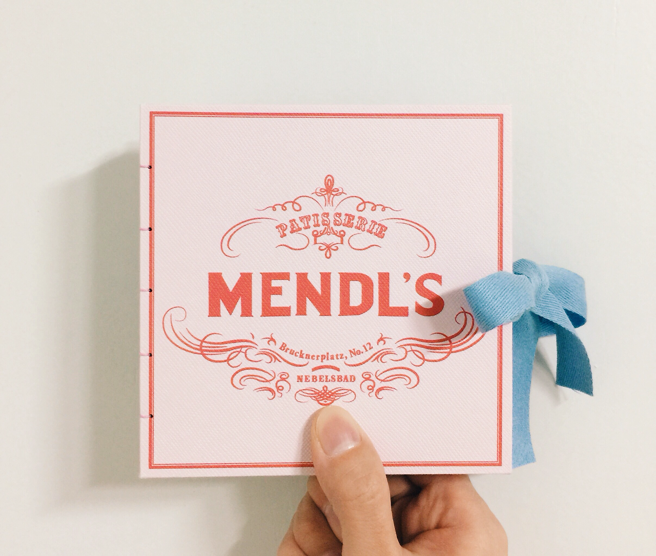 그러다 올여름, 우연히 수제 노트를 알았답니다. 인터넷에서 영화 <그랜드 부다페스트 호텔>에 관한 무언가를 열심히 찾고 있었는데, 어여쁜 멘들스 케이크 상자를 재탄생시킨 수제노트를 발견했어요! 이 영화를 좋아하는 분들은 아시겠지만, 핑크빛 멘들스를 보고 반하지 않은 사람이 없을 거예요.