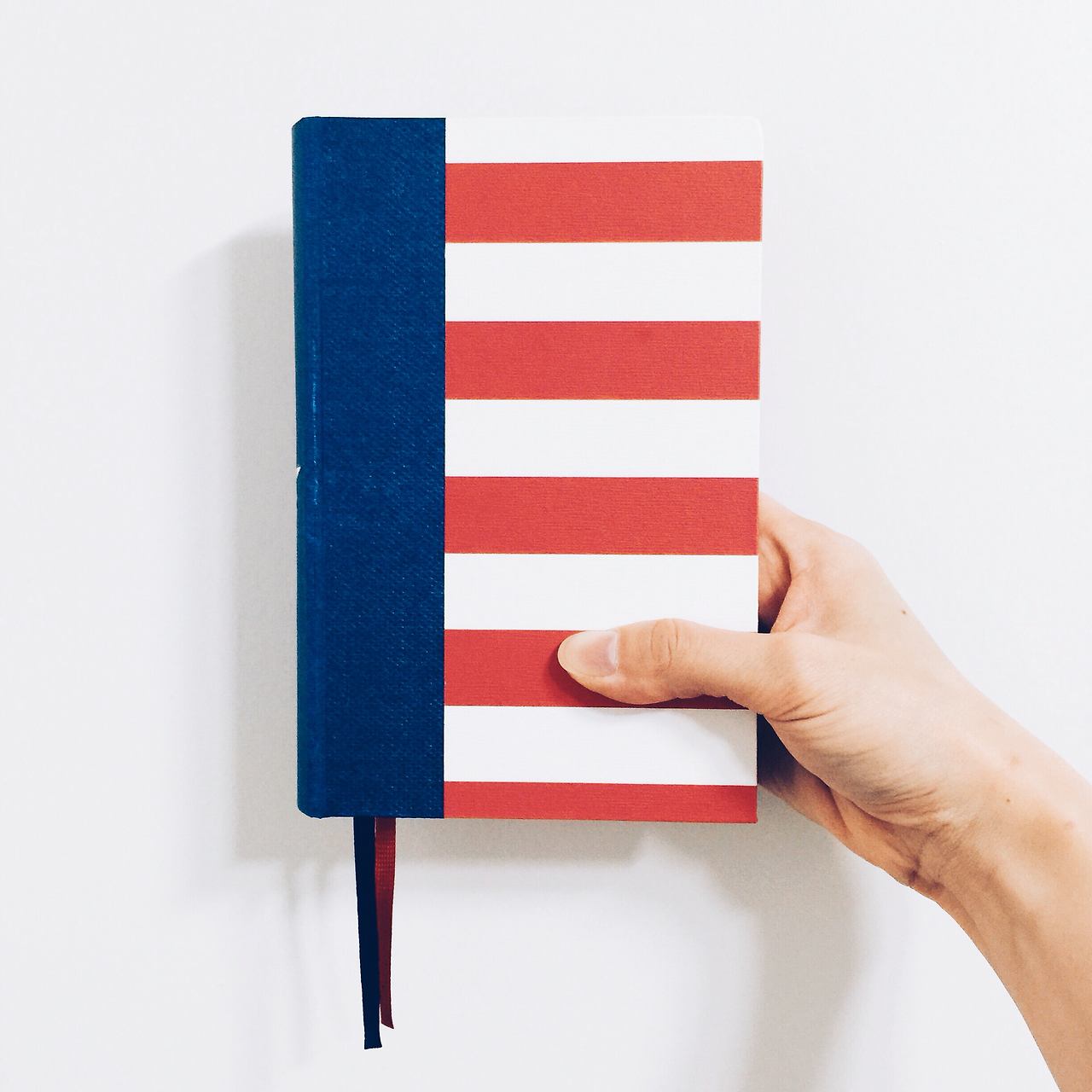 수제 노트를 알고, 만드는 분의 홈페이지와 트위터를 자주 드나들었어요. 어느 날, 영화 <캡틴 아메리카: 윈터솔져>를 모티브로한 노트가 올라왔는데, 붉은 스트라이프와 고급스러운 남색 펄지의 색감에 반해서 또 주문했죠.