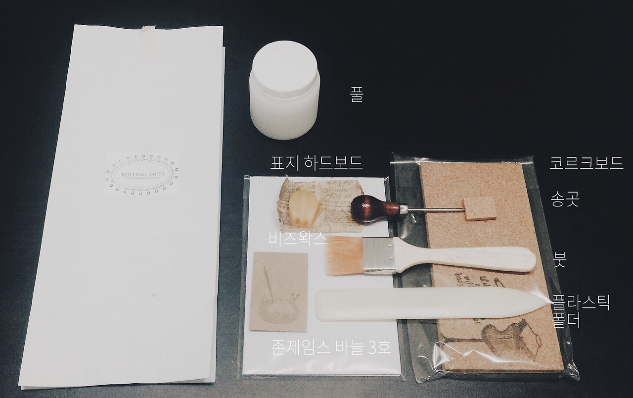 종이로 하드 보드지를 커버링할 때는 벽지 바를 때처럼 붓으로 풀칠해서 커버링해요. 찢어지거나 울지 않도록 주의를 기울여야 하죠. 또, 종이가 여러 겹인 모서리가 뚱뚱하지 않도록 세심하게 눌러 주어야 한답니다.