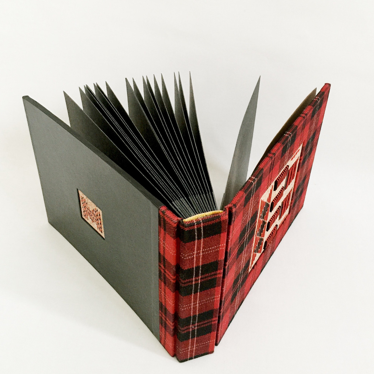붉은색과 검은색으로 이루어진 타탄체크 원단으로 앨범을 만들었어요. 겨울이 오면 크리스마스다, 연말이다, 시끌벅적한 한 해의 끝에서 사람들과 지난 시간을 이야기하지요. 추억을 담을 앨범을 어떻게 만들까 고민하니, 커다란 트리 아래에서 친구들과 샹그리아를 마시며 앨범을 꺼내 도란도란 추억을 곱씹는 장면이 상상 되더라고요. 그래서 보기만 해도 겨울이다 싶은 원단으로 작업하게 됐어요.