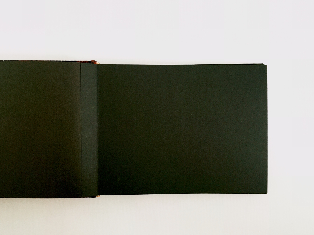 표지와 내지를 이어주는 면지는 화사한 금빛 펄지를 이용해 연말 분위기를 살렸어요. 사진을 붙일 내지는 미색과 검은색 중에 검은색만으로 만들었습니다. 내지에 포토코너를 이용해서 사진을 붙여 쓰는 앨범이에요.
