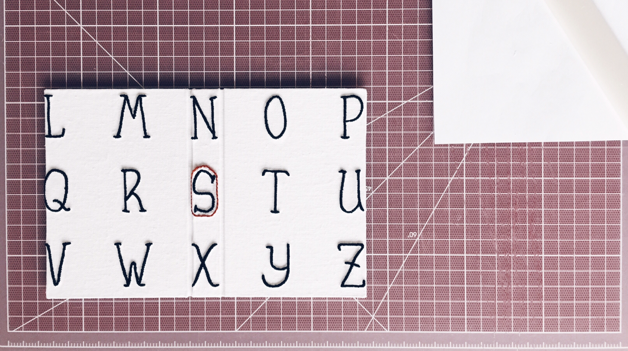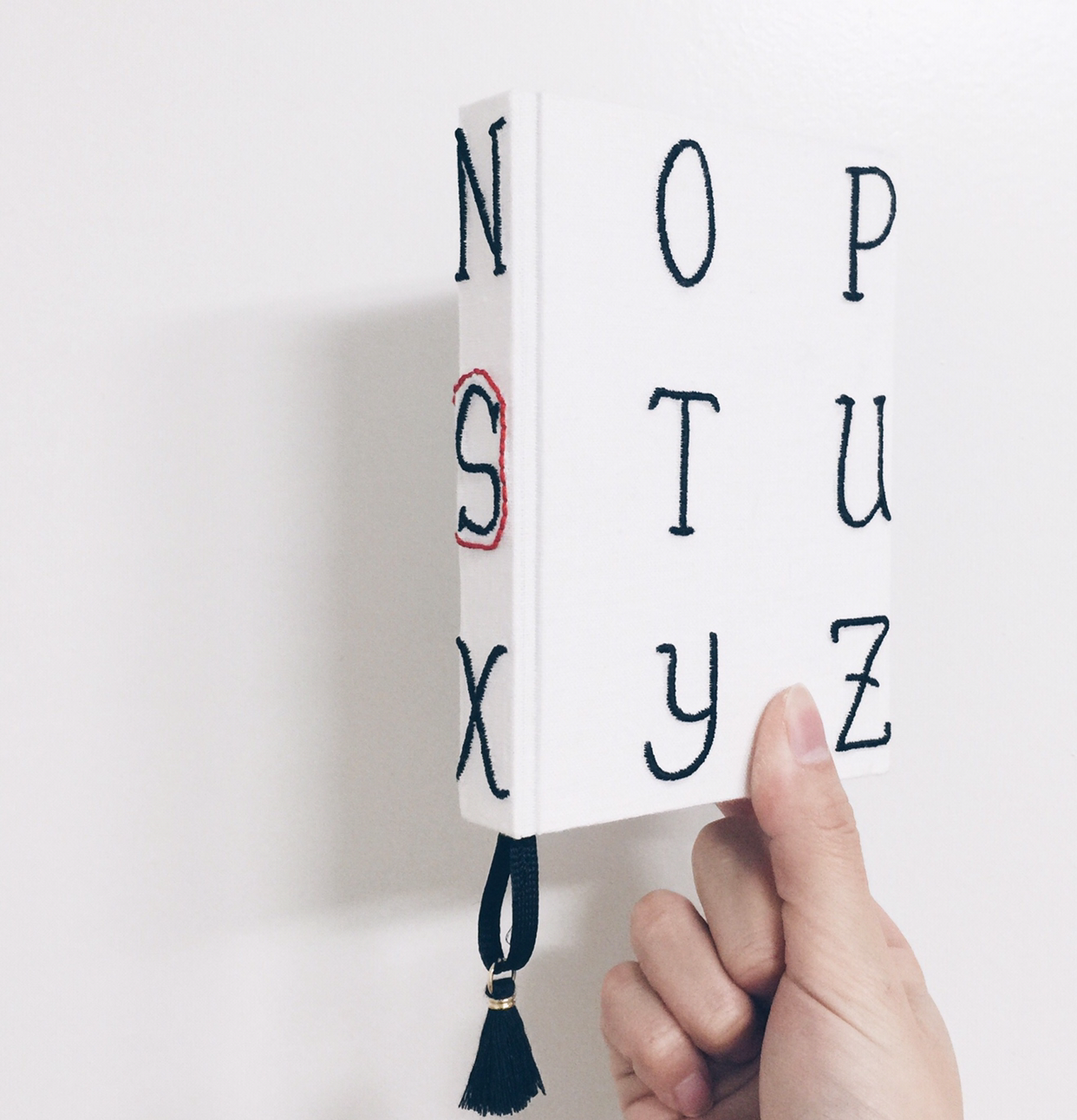 북클로즈로 감싼 뒤표지에는 이니셜을 새겨 넣었어요. 말 그대로 보드를 파서 이니셜을 새기는 작업인데, 꽤 섬세한 손길이 필요하답니다. 하하.