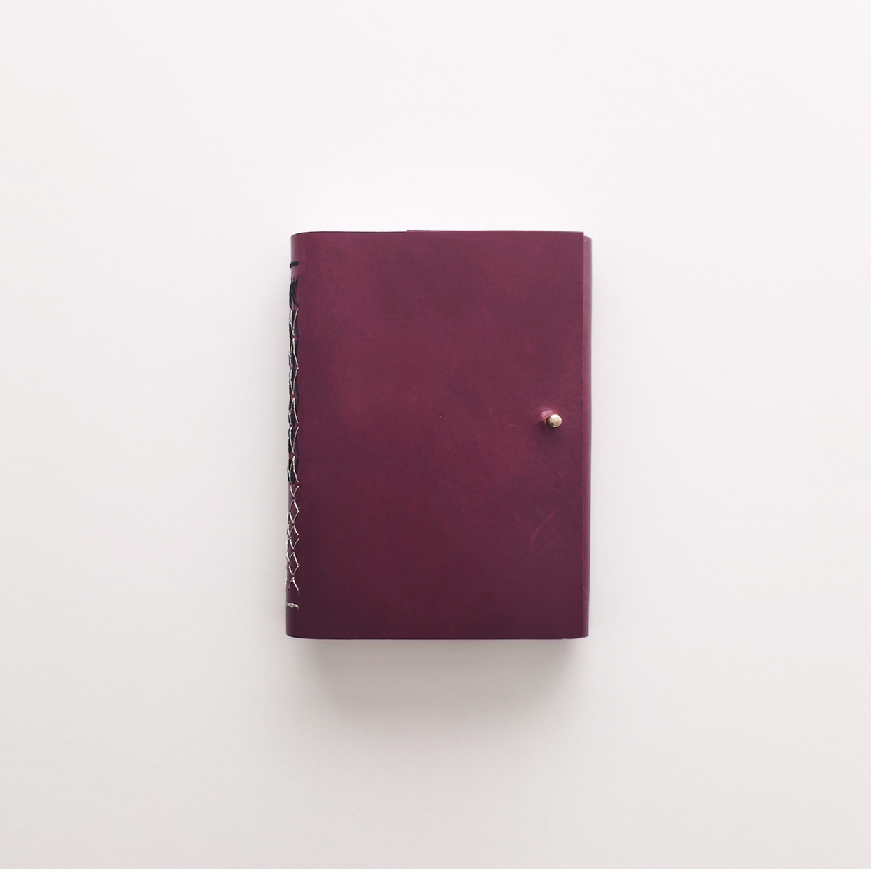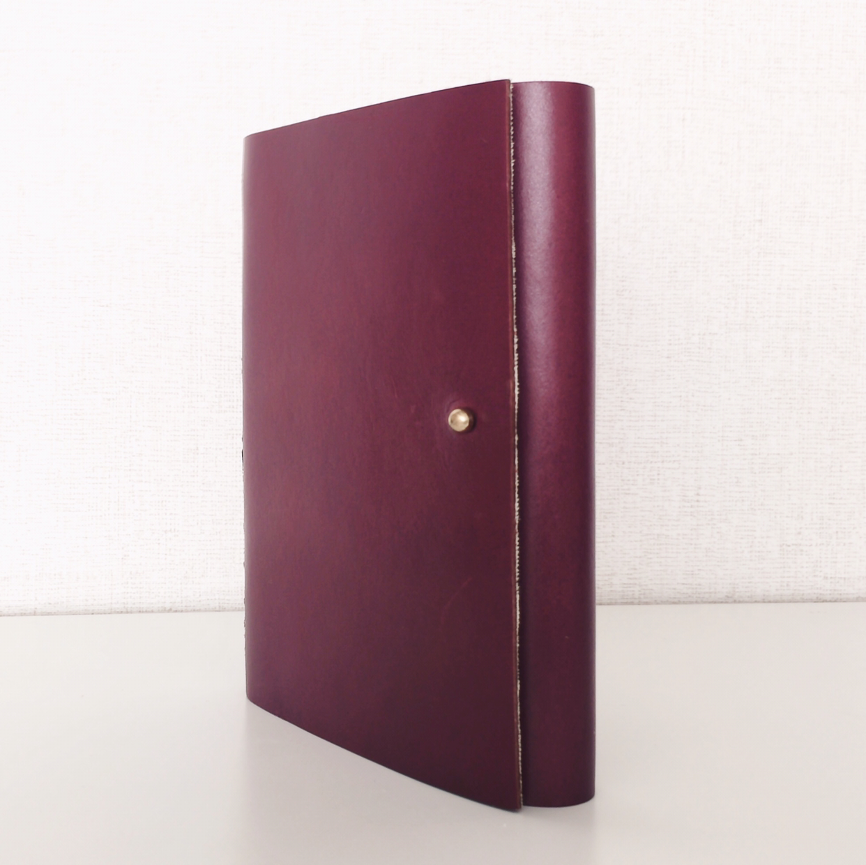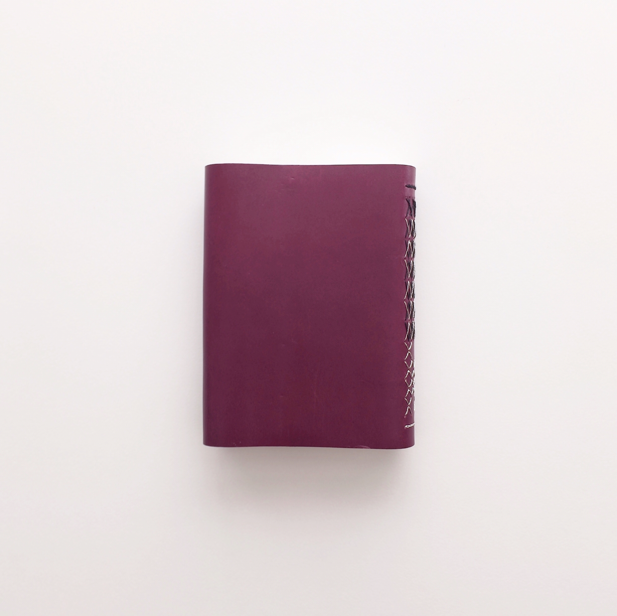 표지에 사용할 소가죽으로 보랏빛이 강한 자주색을 골랐습니다. 보통 노트의 가죽 표지로 빈티지 느낌이 강한 브라운 계열 색을 많이 쓰잖아요. 평소 잘 접할 수 없는 색으로 해보고 싶어 오묘한 빛깔의 가죽을 선택했어요.