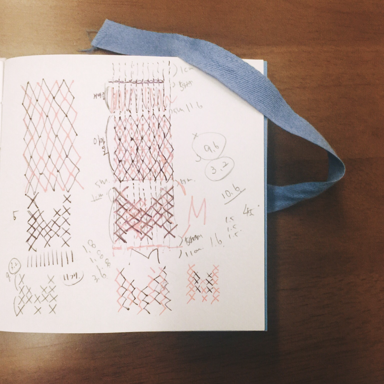 스트라이프와 타탄에 이어 아가일까지. 어쩌다 보니 체크 매니아처럼 체크에서 모티브를 얻었네요. 이번 수업은 책등에 바인딩을 마음대로 디자인할 수 있었어요. 중급 과정에서 배운 제본법(X자/거미줄 바인딩)으로 할 수 있는 디자인을 고민했습니다. 초급 과정 마지막 작품을 만들 때도 과정 중에 배운 스티치로 장식을 했었거든요.