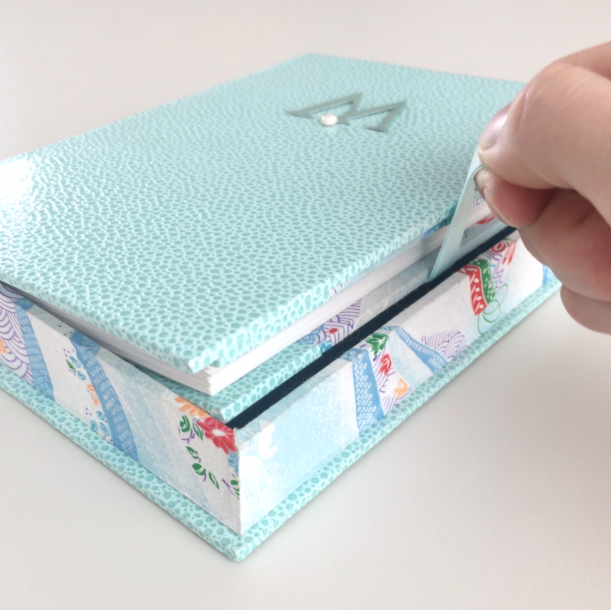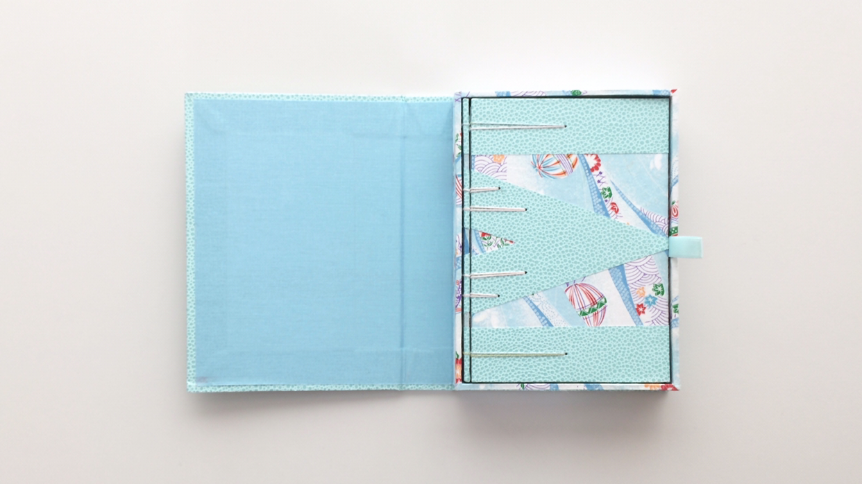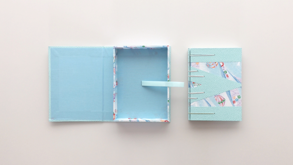 노트가 꼭 맞는 크기로 상자를 만들고, 노트를 쉽게 꺼낼 수 있도록 상자에 끈을 달아요. 상자에 자석을 넣어 뚜껑이 잘 닫히도록 합니다.