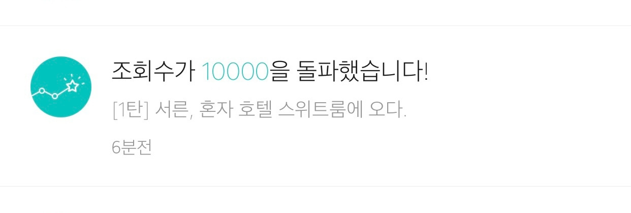 믿을 수 없었다. 어젯밤에 쓴 글이, 조회수가 1000을 돌파했다고? 어젯밤 잠깐, 오늘 오전 시간만 생각하면 올린 지 정말 몇 시간 안 됐는데?! 너무 놀라 확인해보니 정말로 글의 통계치가 1000을 넘긴 상태였다. 어안이 벙벙하여 이게 어찌 된 일인지.. 정신을 차릴 새도 없이 알림이 또 떴다.