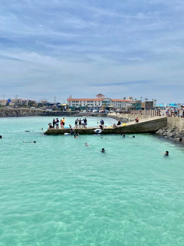 차로 편도 1시간이 걸리는 거리였지만 고작 이틀도 안 남은 일정에서 흐린 날씨 탓에 해수욕 한 번 안 하고 갈 수 없었다. 차를 열심히 몰아서 제주시 판포 포구라는 곳에 도착했다. 스킨 스쿠버 체험을 하고 스노클링도 하며 한여름의 제주 바다를 아주 제대로 즐길 작정이었다.