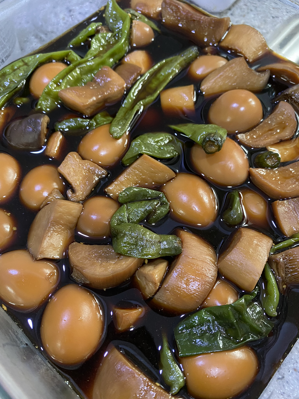 메추리알 조림은 만들고 맛을 보고자 한두 개 집어먹다가 어느새 밥을 차려 메추리알 조림만으로 한 공기를 뚝딱 해치웠다. 새송이 버섯의 식감이 쫄깃한게 의외로 킥이 되주었다. 간이 잘 베인 따끈하고 보드라운 메추리알 역시 참 맛있었다.