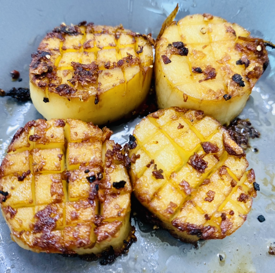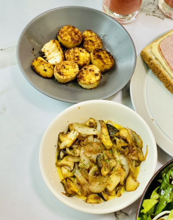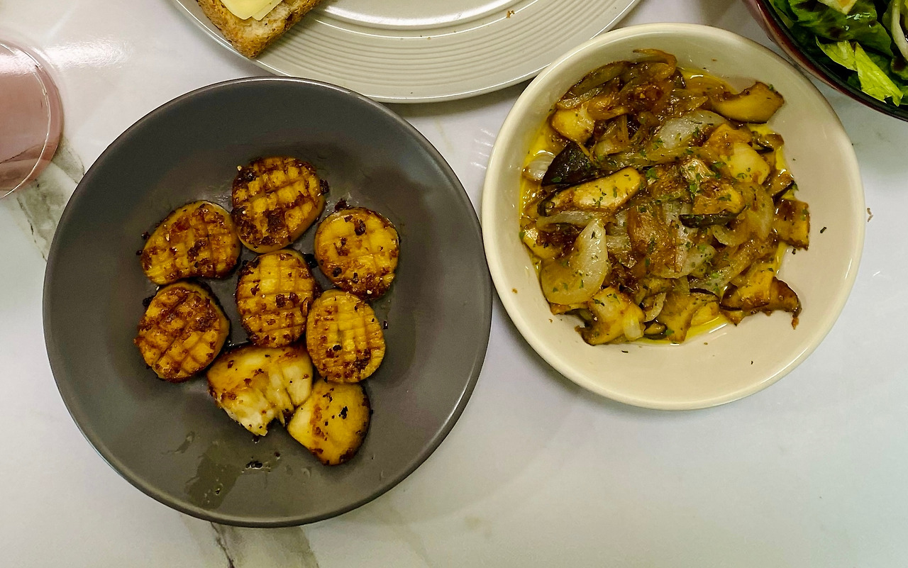 버터와 마늘을 넣은 순간부터 부엌 전체에 달콤하고 맛있는 냄새가 진동을 했기 때문에, 그 친구 표현으로는 '고작 버섯'이지만 무척 기대가 됐던 것도 사실이다. 버섯을 입 안에 넣는 순간, 양면으로 여러 개 낸 칼집 덕분에 구운 부분이 야들야들하면서 동시에 바삭바삭한 것이 꼭 관자 요리를 먹는 것 같았다. 버터, 다진 마늘, 그리고 간장. 이 세 개는 그 어떤 요리에 넣어도 킥이 되는 마법의 친구들이 아니던가? 그런 친구들을 한데 합쳤으니, 고소한 버터의 풍미와 잘 익은 다진 마늘의 향긋함 그리고 간장이 주는 감칠맛 가득한 짭쪼름까지! 거기에 '관자 버섯'까지 더해지니 그야말로 쓰리콤보, 포콤보였다. 그 자리에서 집에 남은 식빵을 데워 갓과 양파를 볶은 것을 올려 먹고, 남은 버터까지 빵으로 그릇째 싹싹 긁어먹었었다. 한 줄 평은 이렇게 할 수 있을 것이다.