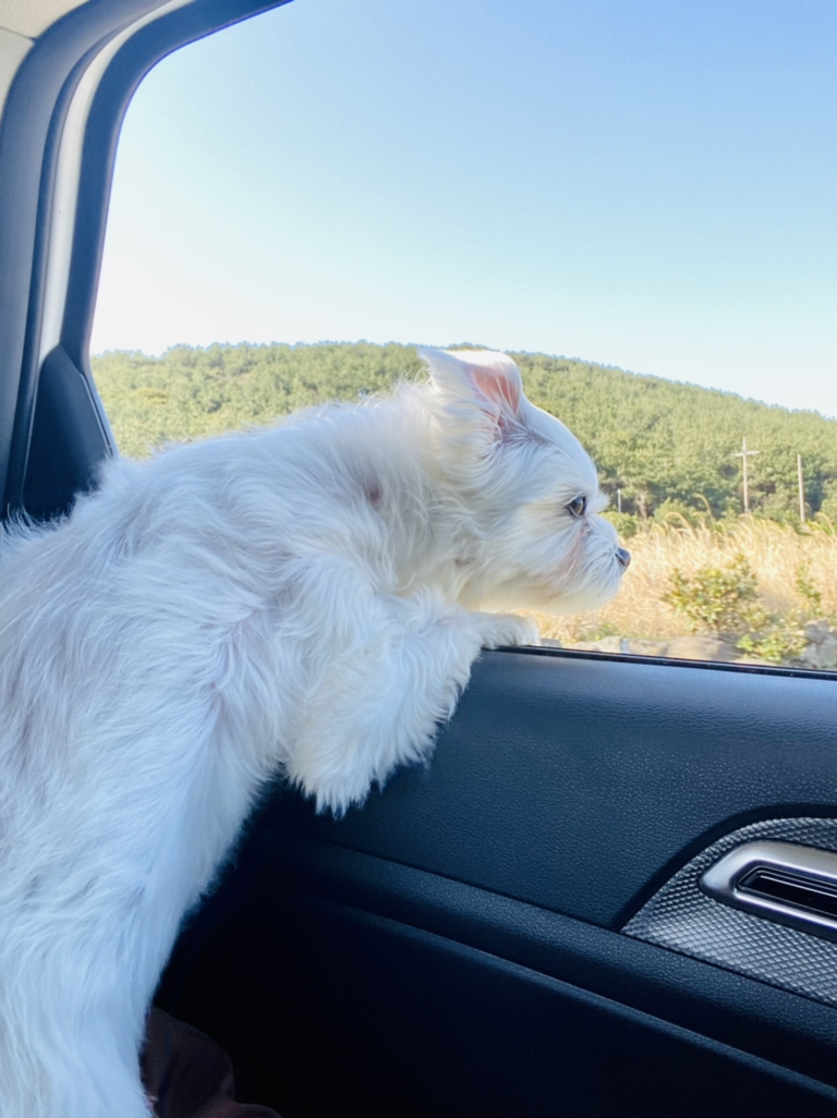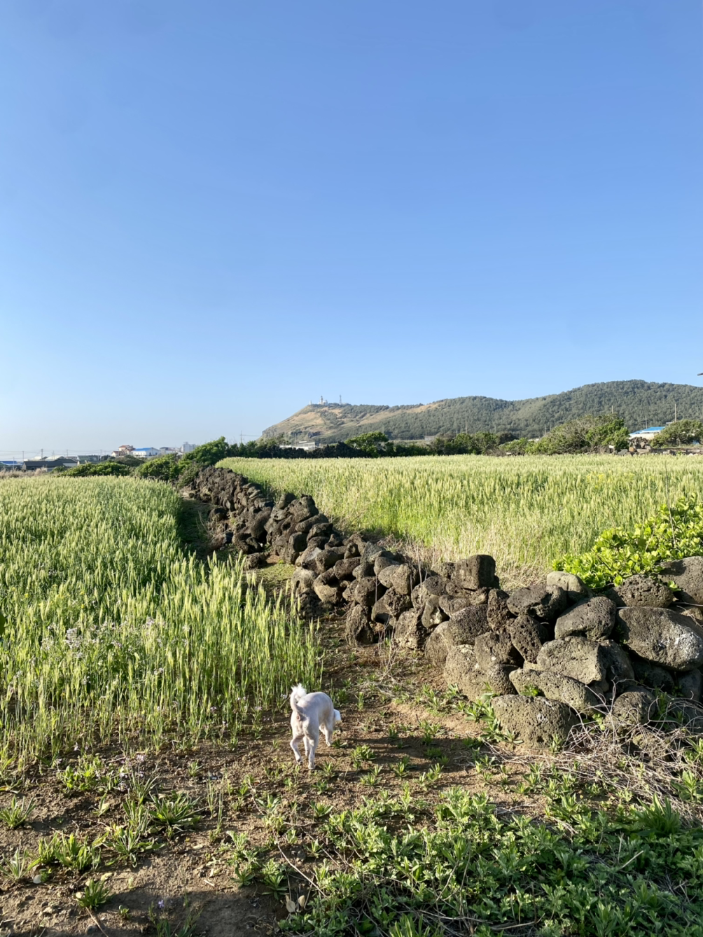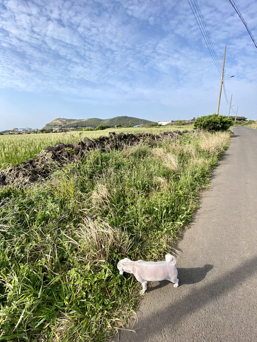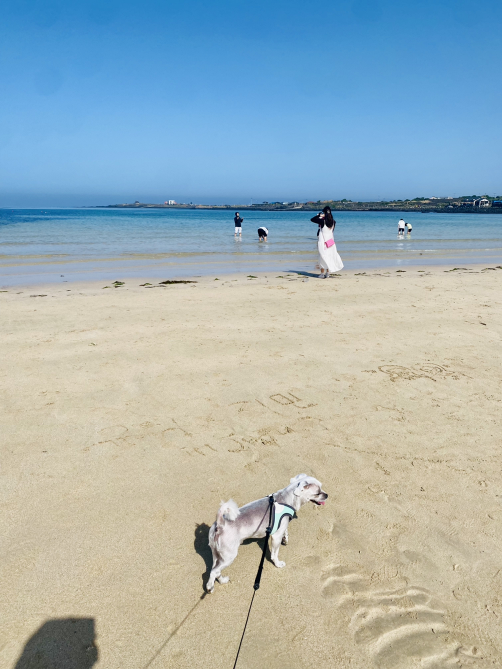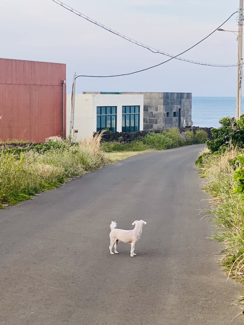 아침에 눈을 뜨면 따끈하고 하얀 털뭉치가 먼저 보였다. 분명 혼자 잠들었는데, 어느새 침대에는 그 조그만 몸에서 나오는 온기가 가득 느껴졌다. 자면서 몸을 뒤척이는 편이라 혹시나 한우를 다치게 할까 봐 방문이라도 닫고 자는 날에는, 새벽부터 발톱으로 '방문 열어! 열어줘!' 하는 시위에 알람보다 한참 먼저 눈을 뜨기도 했다. 다른 누군가가 그랬다면 인상을 팍 썼겠지만, 방문을 열어주면 마치 자신의 침대인 듯 훌쩍 점프해 내 배게를 베고 눕는 당당한 한우의 모습에 웃음이 나곤 했다. 줄을 채우고 산책을 나오면 얼마나 얌전하고 또 귀여운지! 세상 신난 얼굴로 꽃들의 냄새를 맡고, 우도의 수평선과 빛나는 바다에 어우러지는 한우의 모습이 그림 같았다.