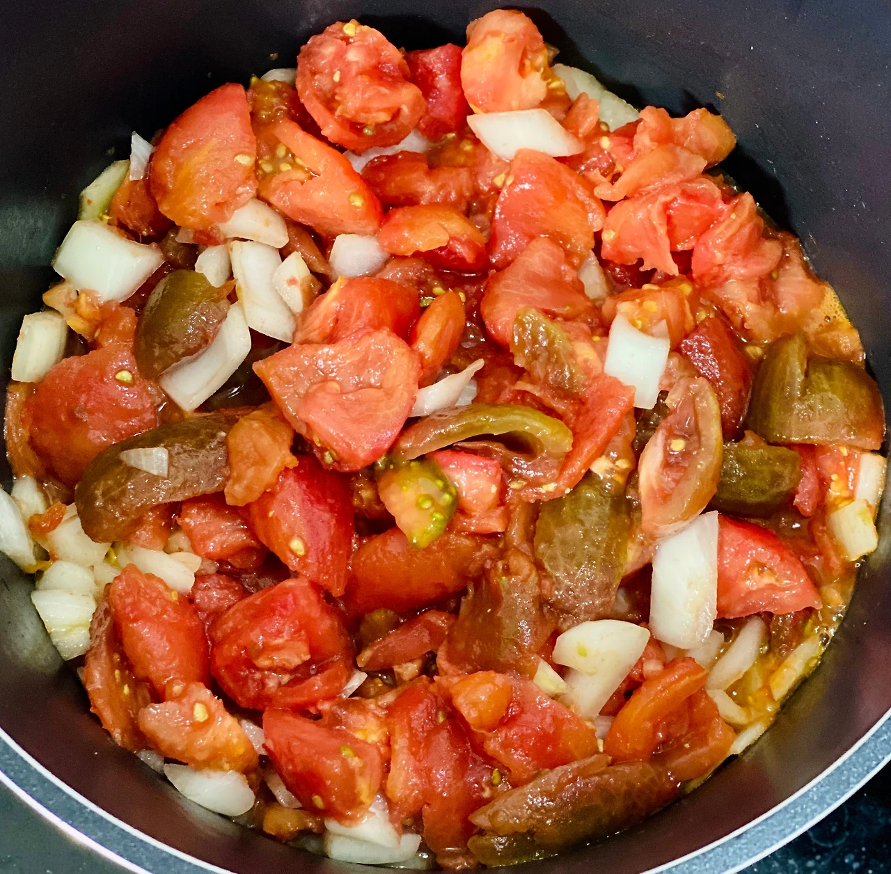 4. 올리브 오일에 양파의 향이 입혀지면 토마토 투하!
