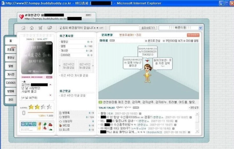 첫 SNS의 기억은 '버디 버디'이다. 소셜 네트워크보다는 메신저에 더 가까웠던 것. 하지만 버디버디에서 '미니홈피'서비스를 내놓고.. 그렇게 처음으로 '가상공간 속 내 공간'에 대해 맛을 알게 되며 사이버 세상에서 보내는 시간이 점점 늘었었다.
