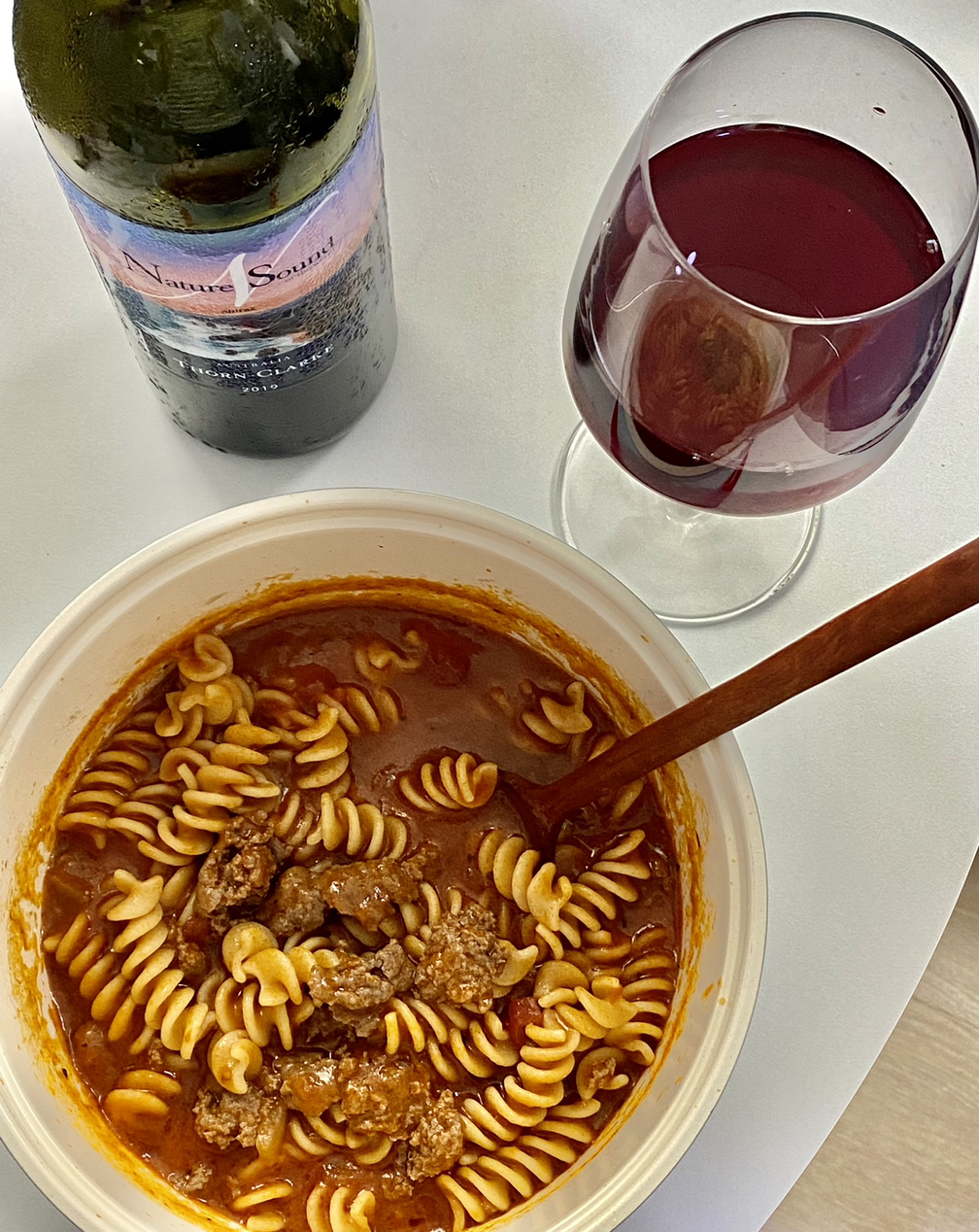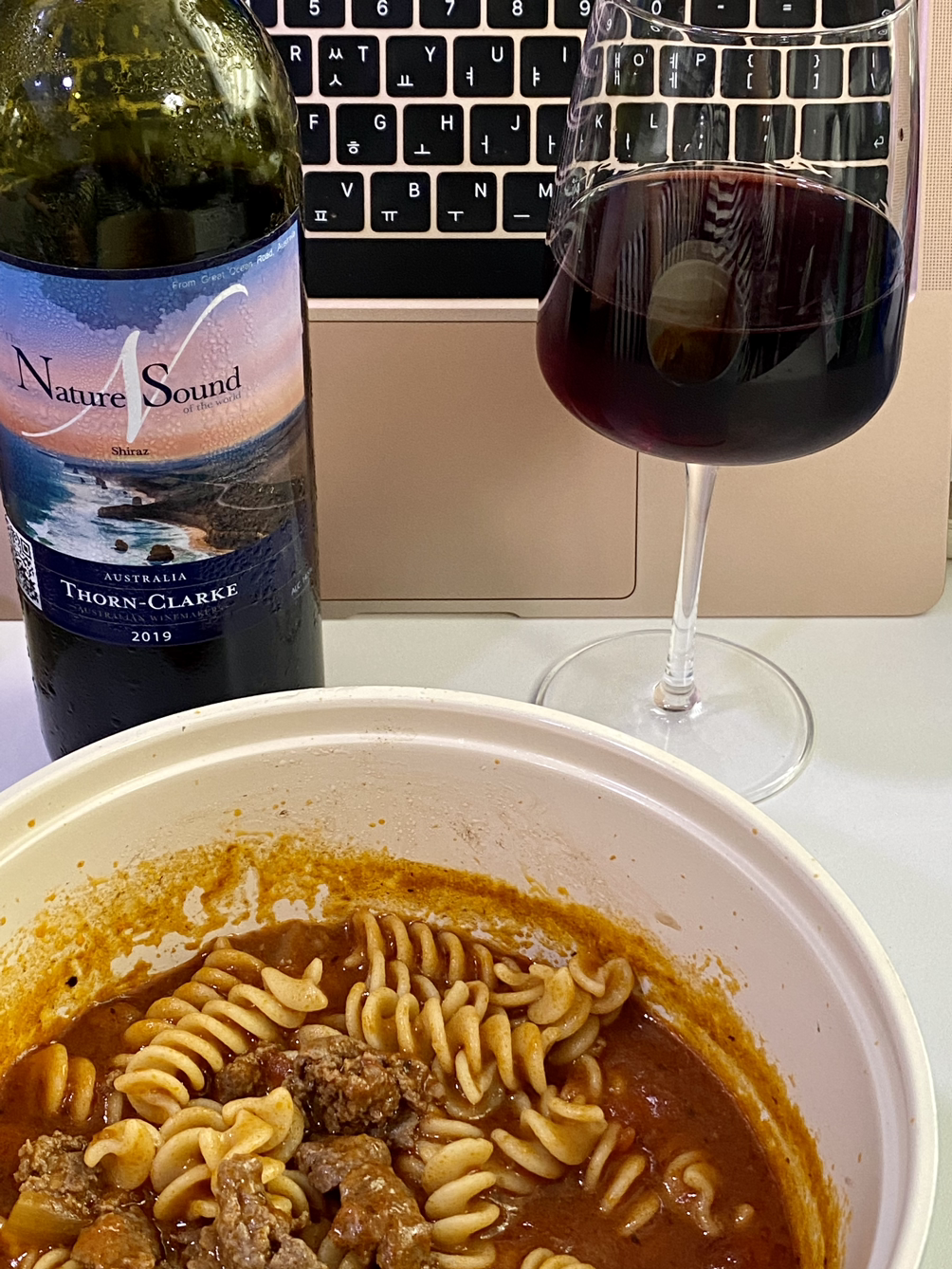 그래서 우리는 연말 파티처럼 드레스 코드를 맞추고, 음식과 술을 맞췄다. 함께 있는 기분을 내기 위해서! 연말인 만큼 빨간 옷을 입기로 했고, 술은 빠알간 레드와인으로!