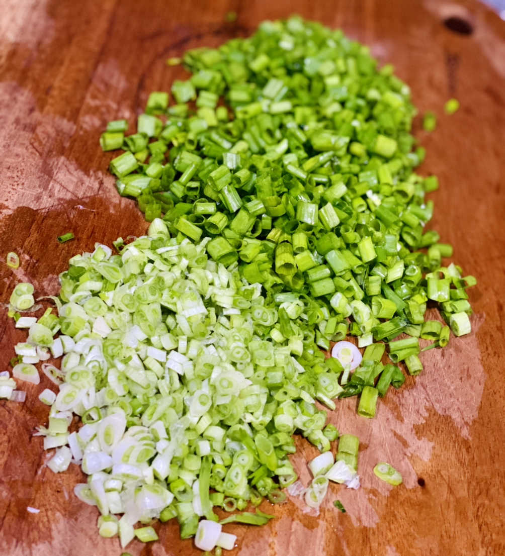 7. 밥이 지어지는 동안 쪽파를 송송송 썰고 고등어를 노릇하게 굽는다.