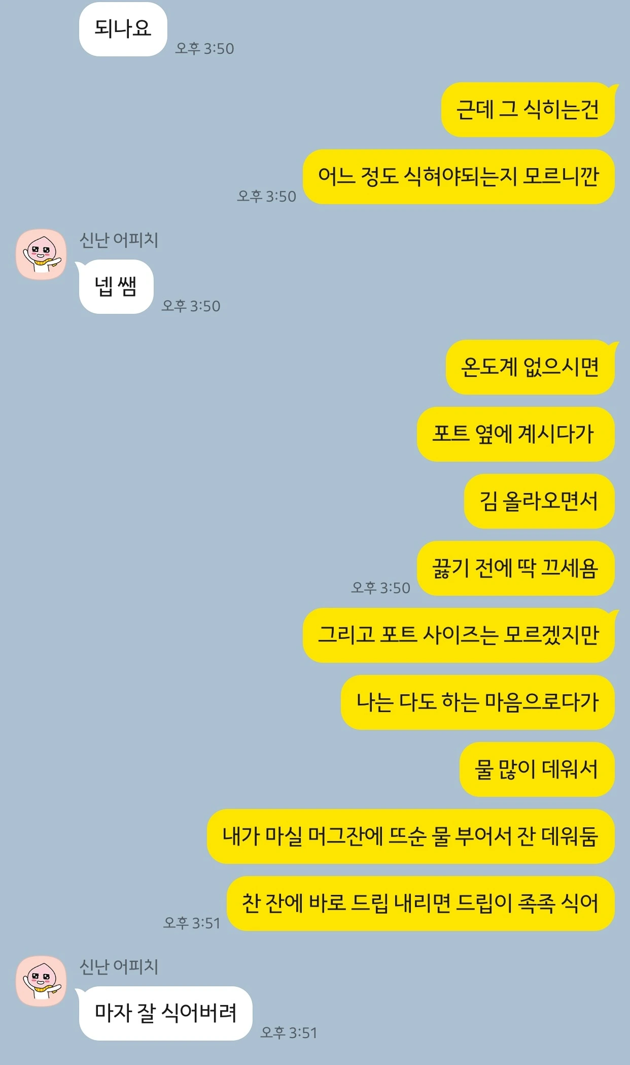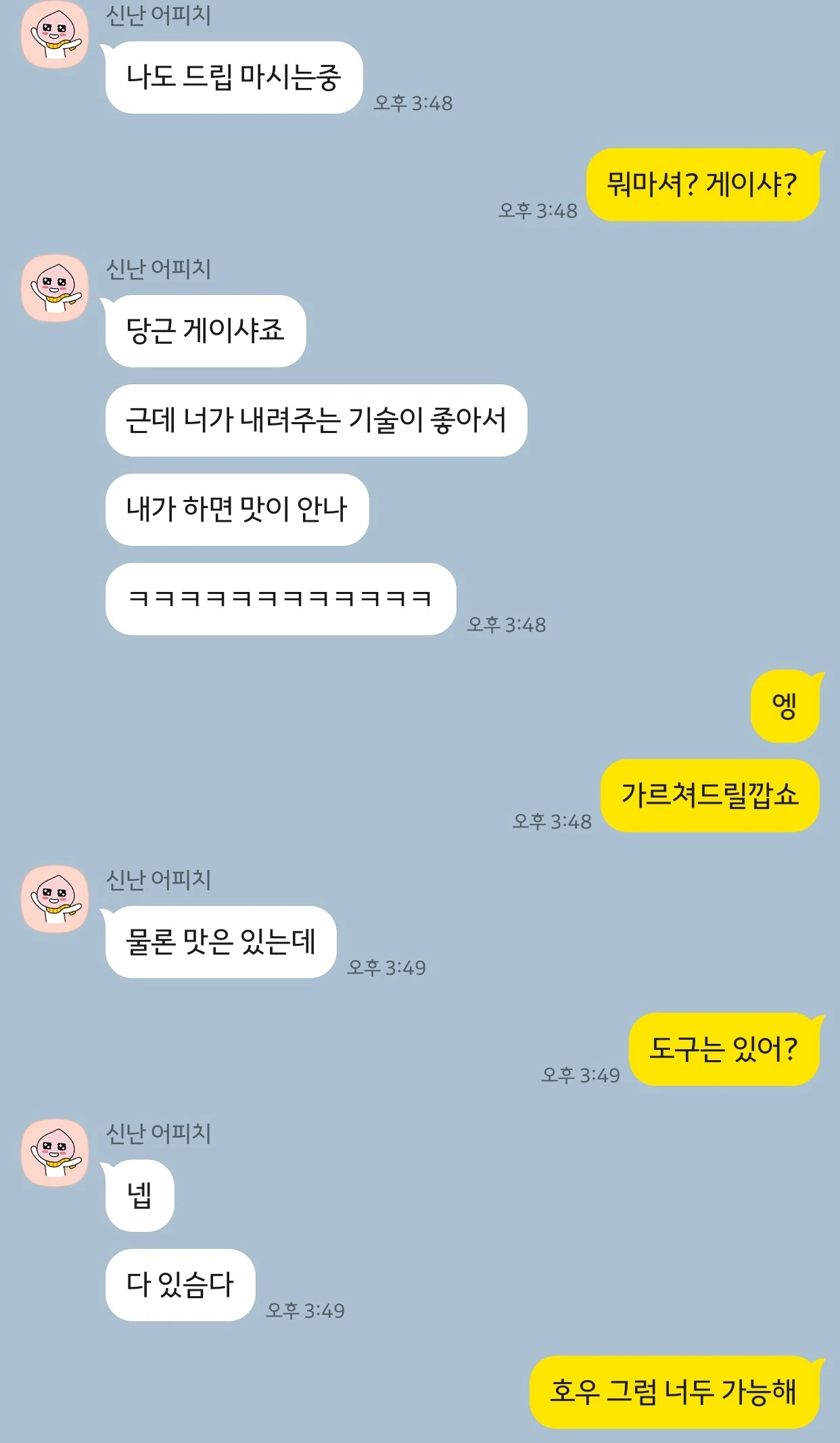 (줄글로 옮기려다가 대화를 첨부하는 것도 재밌을 거 같아 그대로 올려본다.)