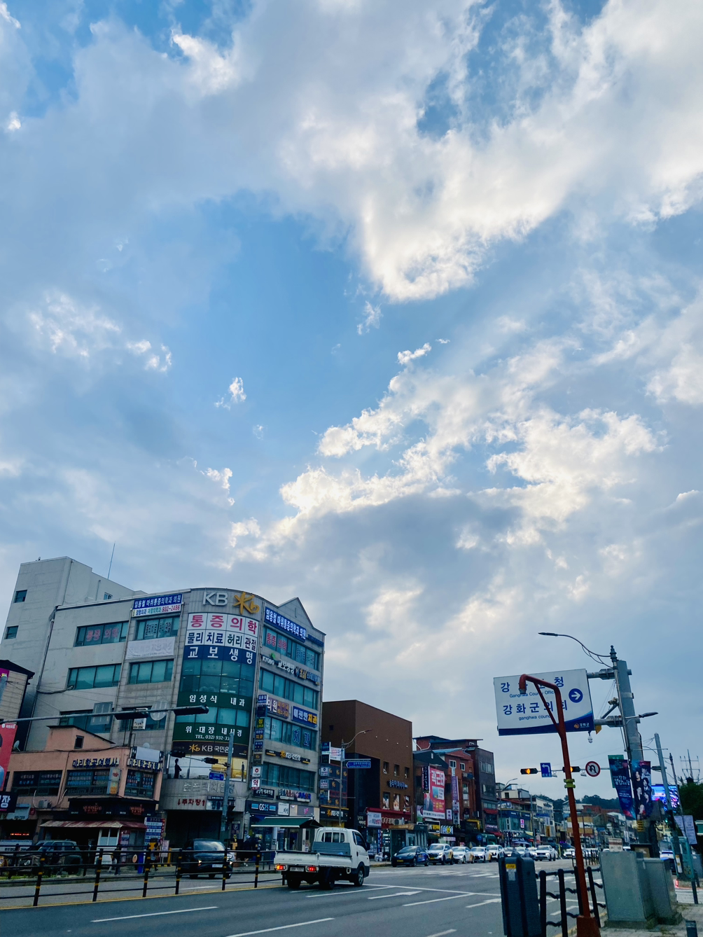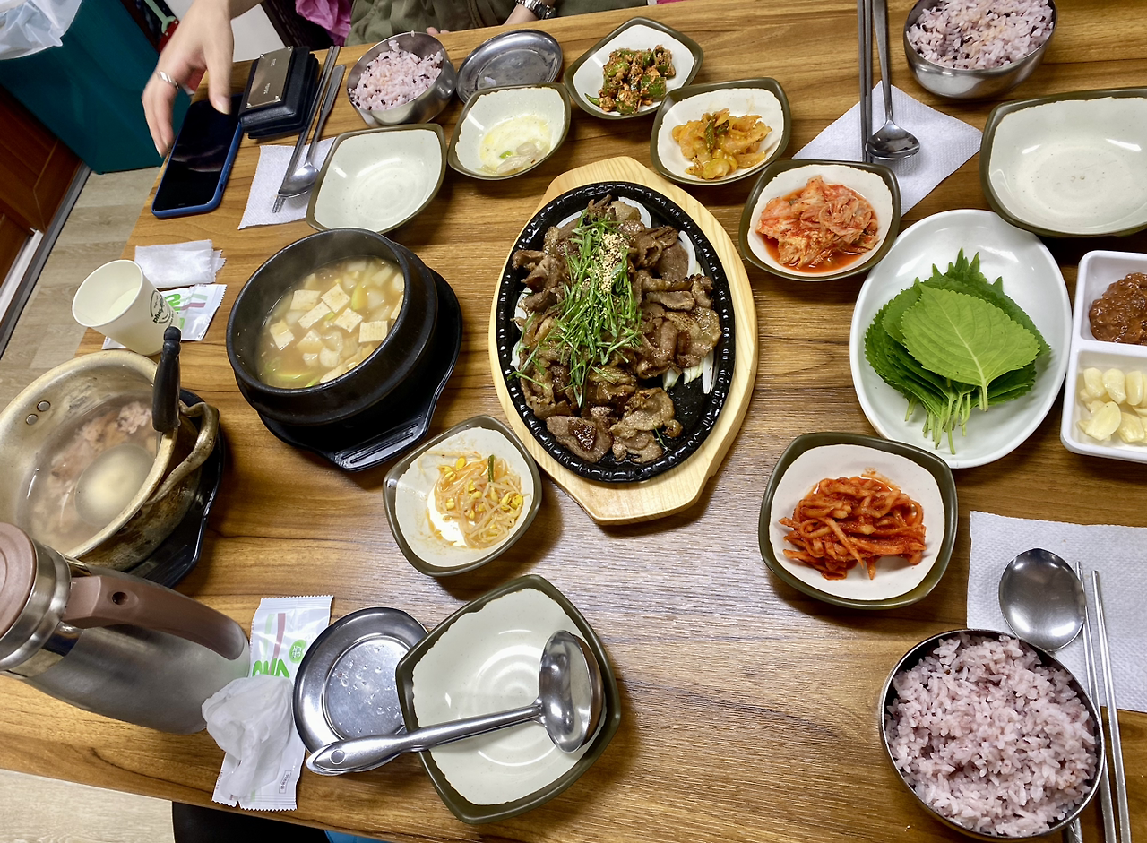 숙소에 짐을 풀고, 저녁은 한식으로 정해서 같은 방 사람들과 길을 나섰다. 하늘은 언제 흐렸냐는 듯, 예쁜 구름과 햇빛을 보여주었고, 저녁을 먹으러 간 식당에서 먹은 '돼지 석쇠구이 백반'은 반찬부터 고기, 찌개까지 모두 맛있어서 매우 행복해졌다. 만원이라는 착한 가격까지...!