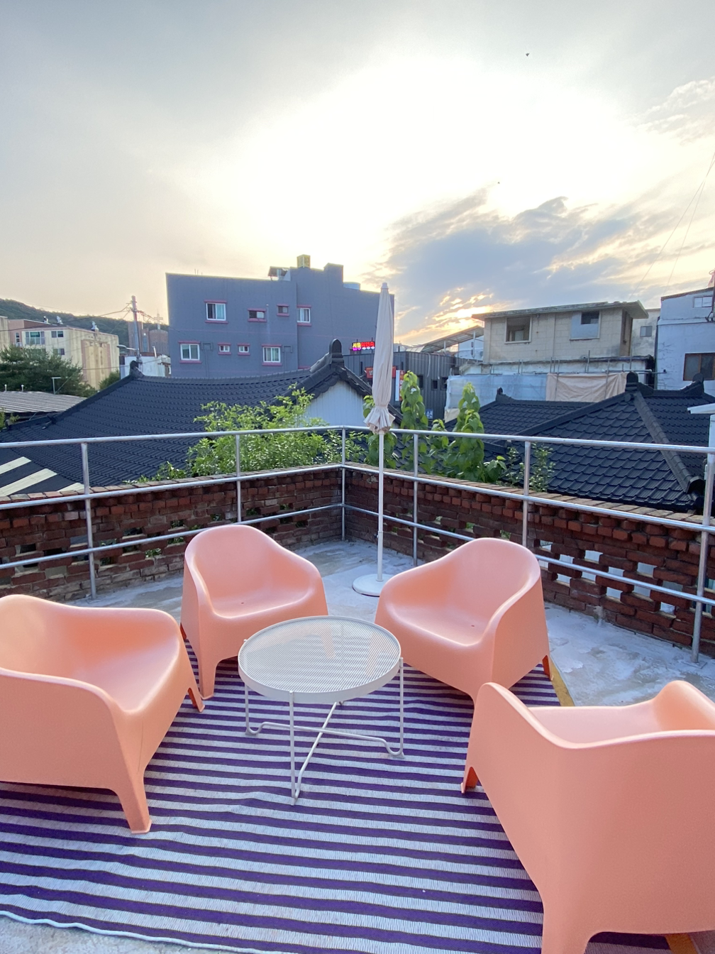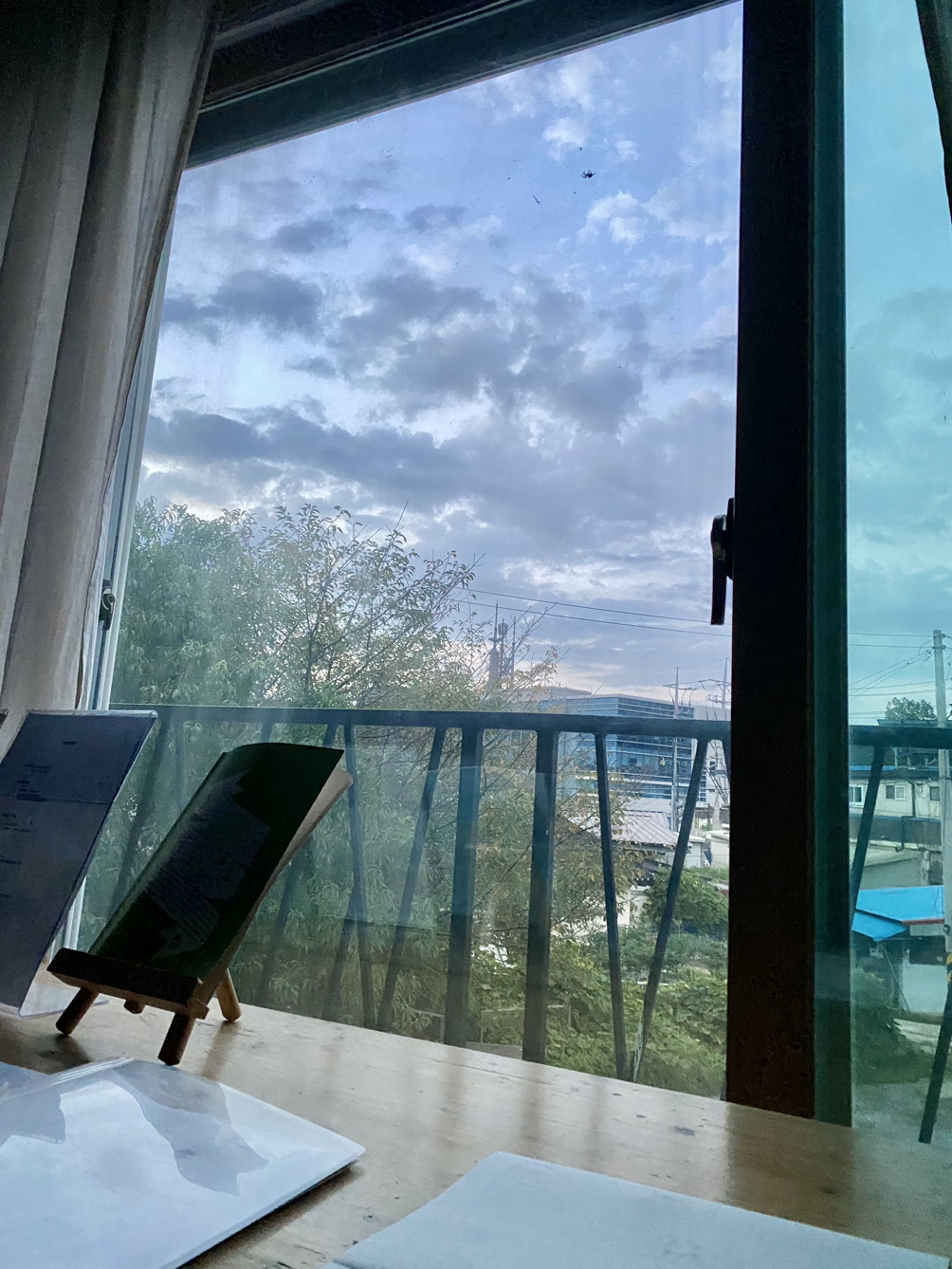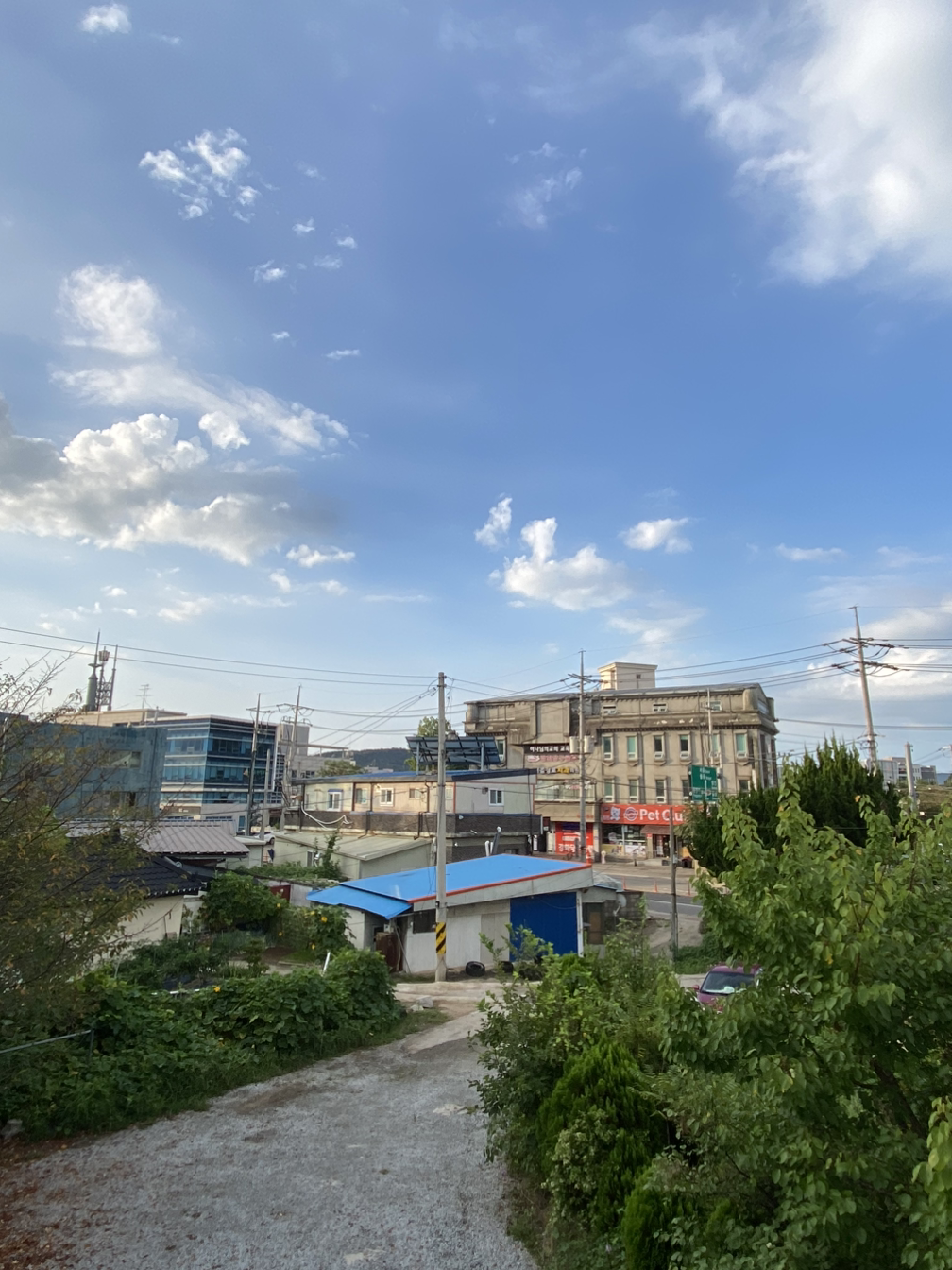 공용 거실엔 요가 매트가 3개 준비되어 있었는데, 나 포함 딱 3명이 함께 명상과 스트레칭을 하게 되었다. 몸의 긴장을 풀고, 주변에 감사함을 가지는 차분한 내레이션을 들으며 명상을 하니 정말 좋았다. 조용한 강화도의 분위기 속에서 해서 더 좋았던 것 같다. 새벽에서 아침으로 넘어가는 하늘이 예뻐서 사진도 여러 장 찍고, 혼자 '강화집'이라는 백반집으로 걸어갔다.