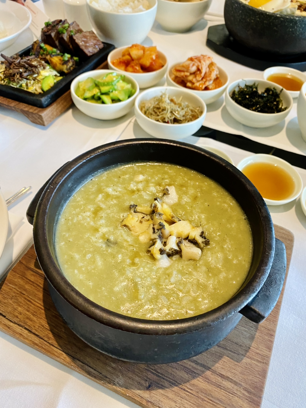 전복죽은 조금 아쉬웠다. 빛깔도 전복도 많이 들어있었지만 내장 특유의 고소한 맛이 부족했다. 그래도 뚝배기에 담겨와서 오래오래 뜨끈한 죽을 먹을 수 있어서 좋았다.
