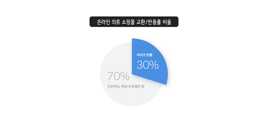 사이즈 문제로 인한 교환/반품은 단지 A양 만의 일이 아닙니다. 온라인 쇼핑몰의 교환/반품률 중 약 30% 정도가 A양과 같은 사이즈 문제로 교환/반품됩니다. 요즘 어느 때보다 온라인 쇼핑이 활성화되어 있음에도 불구하고, 사이즈 문제가 해결되지 못하고 있는 이유는 무엇일까요?