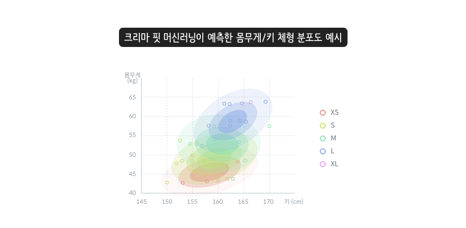 크리마는 이러한 분석을 통해 사이즈 선택 시 소비자에게 가장 필요한 서비스인 ‘크리마 핏'을 개발하였습니다. ‘크리마 핏'은 사이즈 추천, 사이즈 통계, 사이즈 피드백, 사이즈 비교 기능 등 다양한 개인 맞춤형 사이즈 데이터를 제공하며, 소비자들은 이 솔루션을 통해 보다 쉽고 빠르게 사이즈 고민을 해결할 수 있습니다.