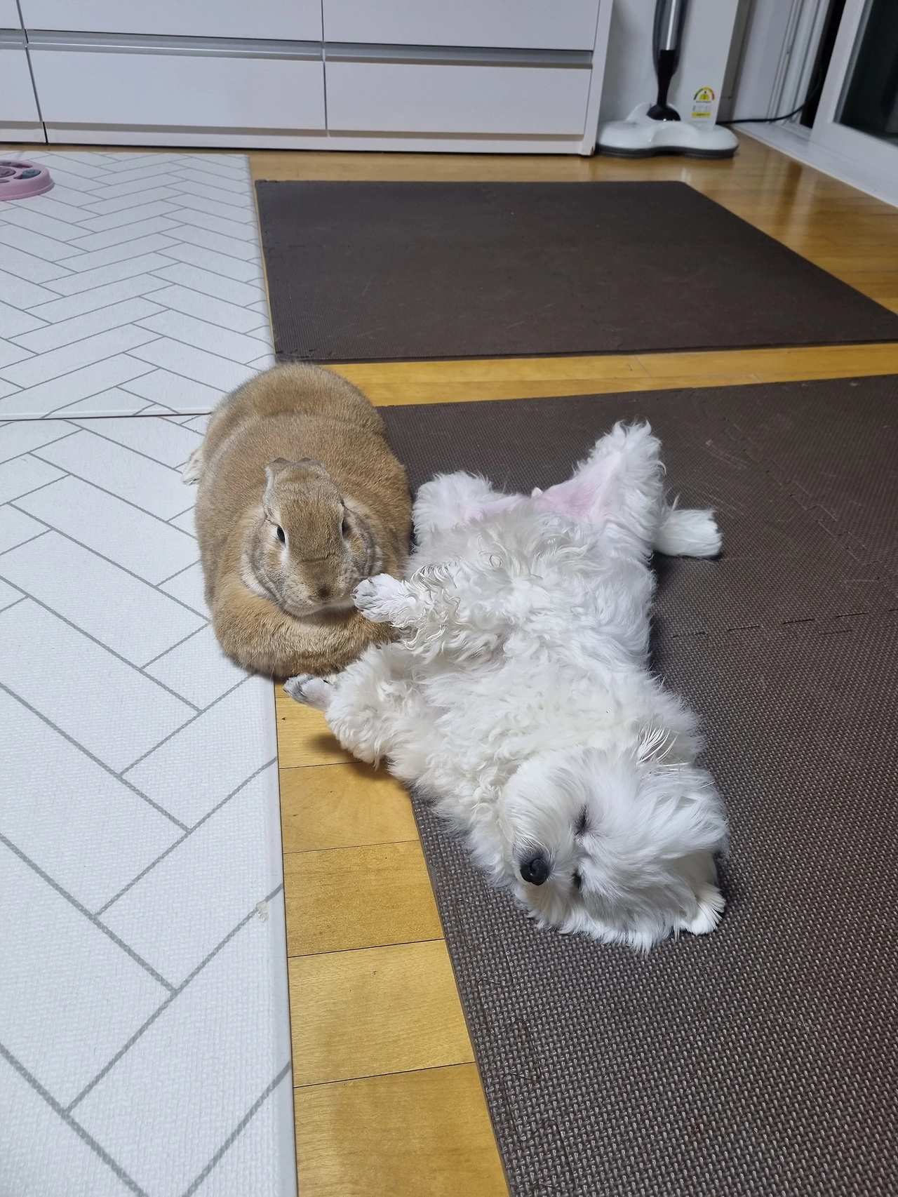 지금은 벌써 단양에 있는 초등학교로 온 지 2년 1개월이 흘렸다. 가족은 서울에 있어 서울에 일정이 있으면 주중에 서울에 가고 주말에도 올라가는 생활을 하고 있다. 오늘은 월요일이라서 집(서울)에서 학교(단양)로 가야 한다. 어제 새벽 4시 45분에 시간을 맞추어 놔서 45분에 핸드폰 알람이 울리고 바로 일어나서 알람을 껐다. 핸드폰 알람을 늦게 끄면 옆에서 자는 아이와 처가 깰 수 있고, 처는 새벽에 깨면 신경질적으로 반응한다. 따라서 핸드폰 알람이 울리자마자 바로 껐다. 하지만 옆에서 강아지(하리)가 멀꼼멀꼼 쳐다보고 있다. 평소에는 내 등 옆이나 팔 어깨에 기대고 자고 있을 하리가 처와 아이 사이의 빈 공간에서 누워 나를 쳐다보고 있다. 항상 월요일 새벽에는 자신을 놓고 떠나는 일상이 반복되다 버려지는 상황에 부닥치기 전에 자신과 함께 할 주인 옆에 미리 있는 것이다. 하리가 계속 쳐다보고 있지만 못 본 체하고 하고 거실로 나왔다. 나의 움직이는 행동과 소리에 거실 테라스에 있는 토끼(보리)도 같이 움직인다. 또한 못 본 체하고 나와 간단한 세면과 치아를 닦고 면도를 했다. 어제 미리 입을 것을 생각했기 때문에 내 방에 가서 바지와 반팔세미티(탑텐에서 최근에 사들인 물건인데 만족도가 좋다. 몇 개 더 살 것이다), 재킷을 입었다. 옷을 다 입고 신속히 테이블 위에 있는 노트북을 가방에 집어넣고 보리(토끼)에게 갔다. 테라스에 있는 보리가 계속 나를 응시하고 있다. 밤새 혼자 테라스에 있으니 매우 심심하고 배가 고팠을 것이다. 테라스 문을 열고 보리가 좋아하는 펠릿과 해바라기씨를 주었다. 몇 점 주워 먹더니 잽싸게 거실로 들어왔다. 아마 먹는 것보다 답답함과 외로움을 컸을 것이다. 벌써 5시 5분인데 보리가 거실로 들어왔다. 5시 10분에 나가야 집 앞에 있는 마을버스를 5시 20분에 따고 청량리까지 가는 환승 정거장까지 갈 수 있는데…. 보리를 잡으려고 하니 도망간다. 하는 수 없이 보리를 강제적으로 테라스방에 집어넣고 문을 닫았다. 보리가 쳐다보지만, 못 본 체하고 나온다. 끝내 하리는 거실로 나오지 않는다. 몇 번 나오다가 거실에서 버려지는 경험을 한 탓인가? 나오지 않는다.
