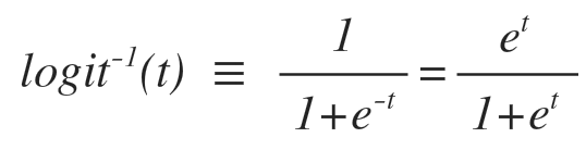 이 0 ~ 1 사이의 한정된 값으로 변환해 주는 함수가 필요한데, inverse-logit(역로직) 함수 가 예시가 될 수 있다.