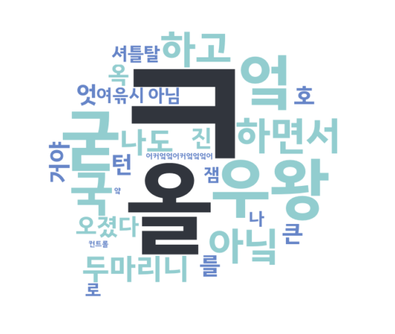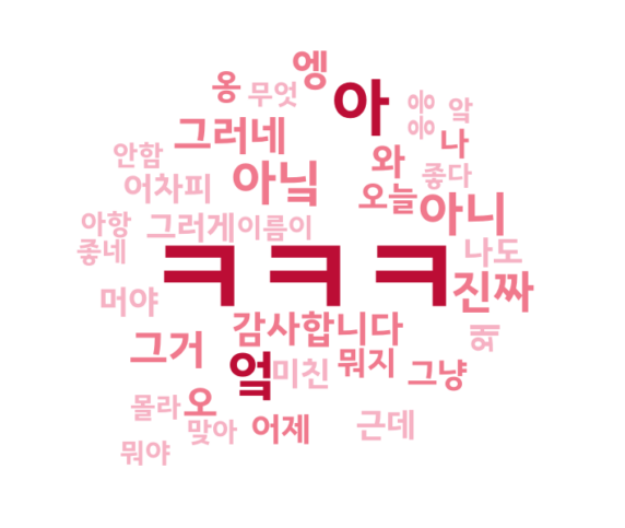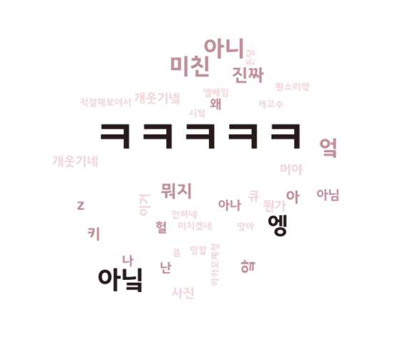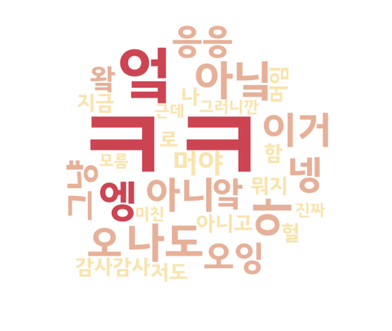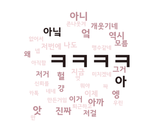 이제 ㅋ단어와 어떤 단어를 불여서 사용하는지 워드 클라우드를 통해 알아보자