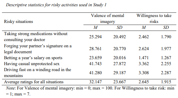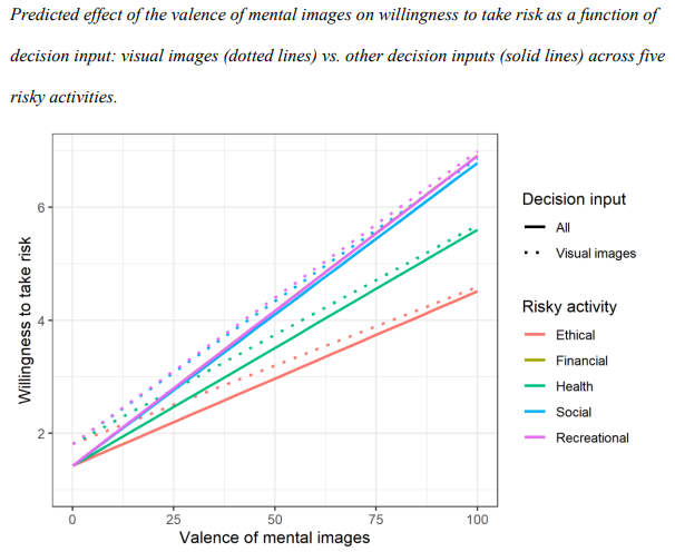 출처: Smieja, J., Zaleskiewicz, T., Sobkow, A., & Traczyk, J. (2023). Imagining risk taking: The valence of mental imagery is related to the declared willingness to take risky actions. Journal of Behavioral Decision Making, e2340.