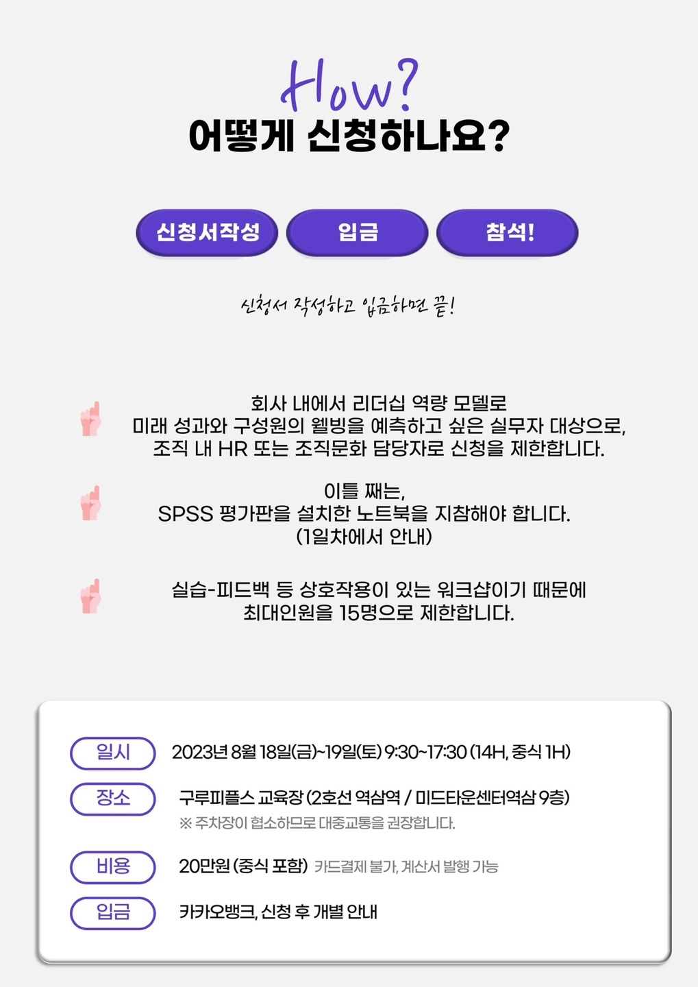 사실, 담당자들이 이론에 근거해 자사에 맞는 진단 프레임워크를 구성할 수 있는 역량과 데이터 분석 역량을 갖춘다면 이 모든 문제는 쉽게 해결될 수 있다. 이렇게 저렇게 생각을 하다가 뜻이 맞는 사람들이 도움을 주셔서 본 프로그램을 개설하게 되었다.